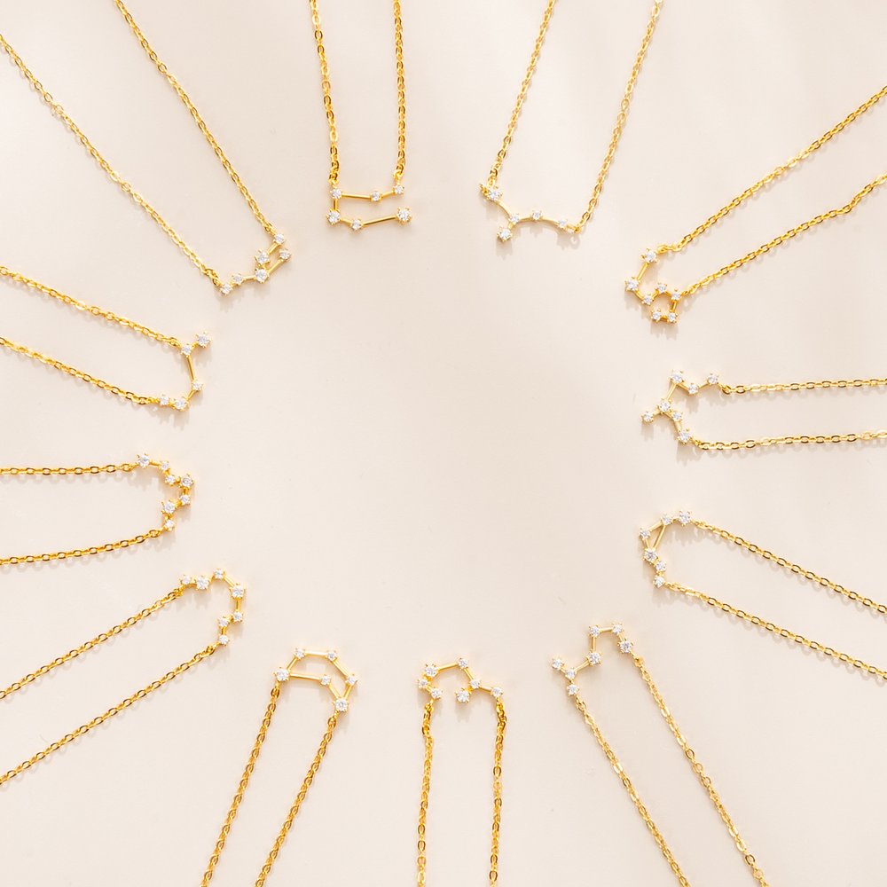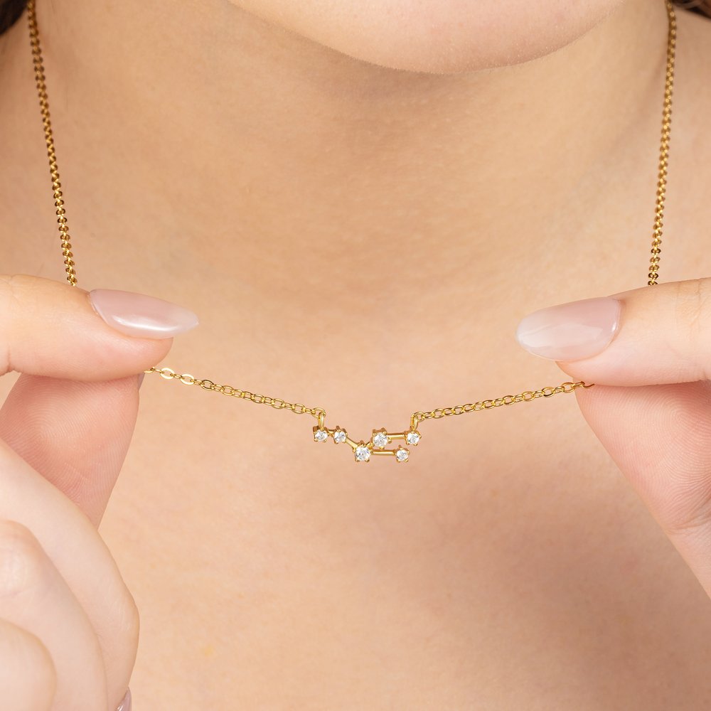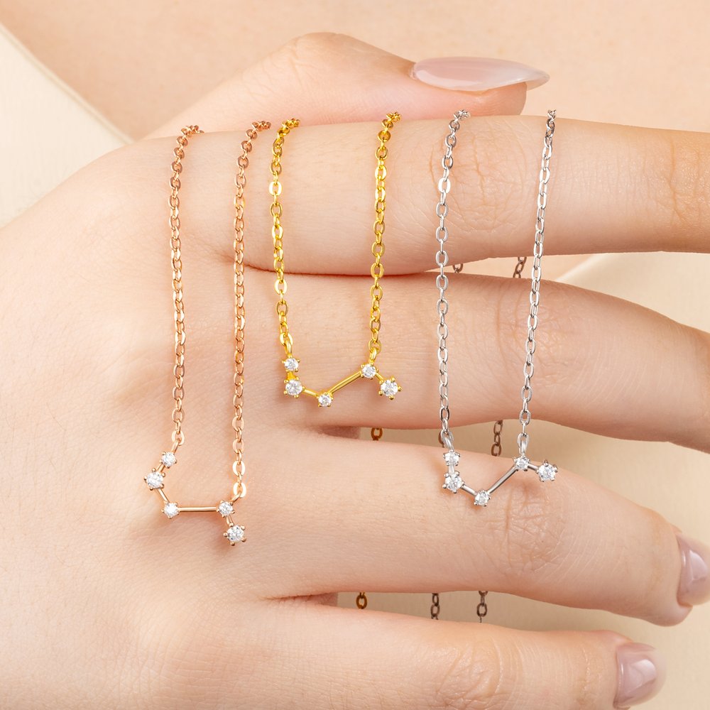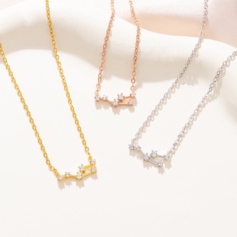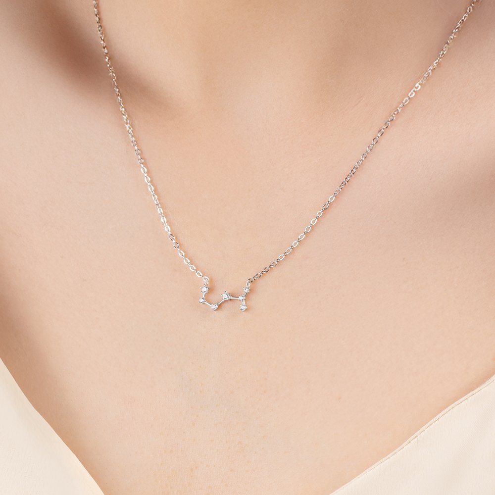 The pendant, crafted in the shape of a constellation, is a celestial masterpiece. Each zircon stone is meticulously placed to mimic the stars in the night sky, creating a dainty yet dazzling effect. The zodiac element adds a personalized touch, making it not just a necklace but a representation of one's unique astrological sign. The sleek sterling silver chain complements the pendant perfectly, giving it an elegant and refined look.
