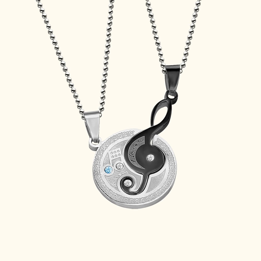 •This music note necklace is designed for the music lover couples. The necklace can be separated into two parts and unite into one disc. The music note can be inlaid on the disc, which means the two lovers can be together forever. Two birthstones sparkling on the disc highlight the uniqueness of the necklace.