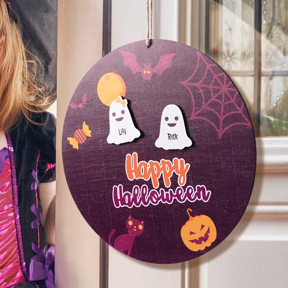• Lovely Design: Our Halloween door sign features the shape of round sign, which is combined by different elements of Halloween, such as ghost, bat and pumpkin, and different patterns, looking more interesting and funny. The Halloween wooden signs can be engraved family name on ghost, it looks adorable and very suitable for Halloween.