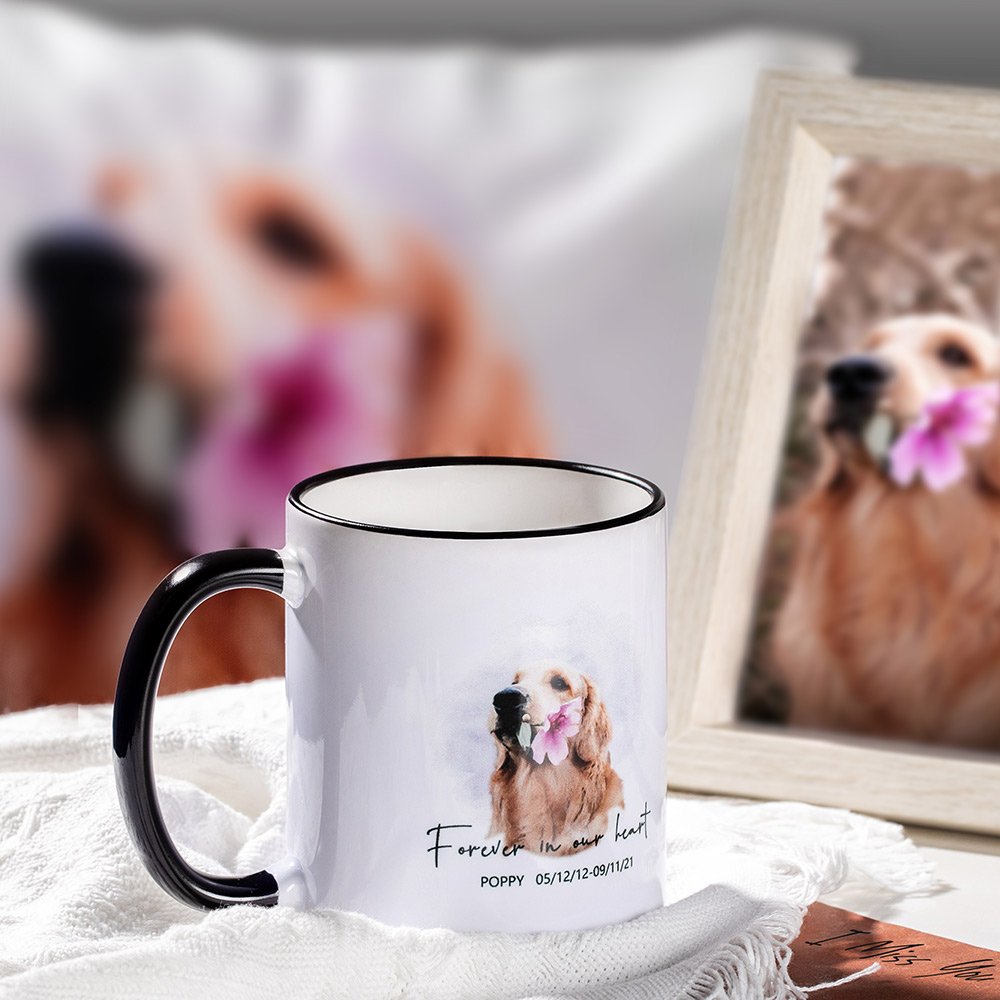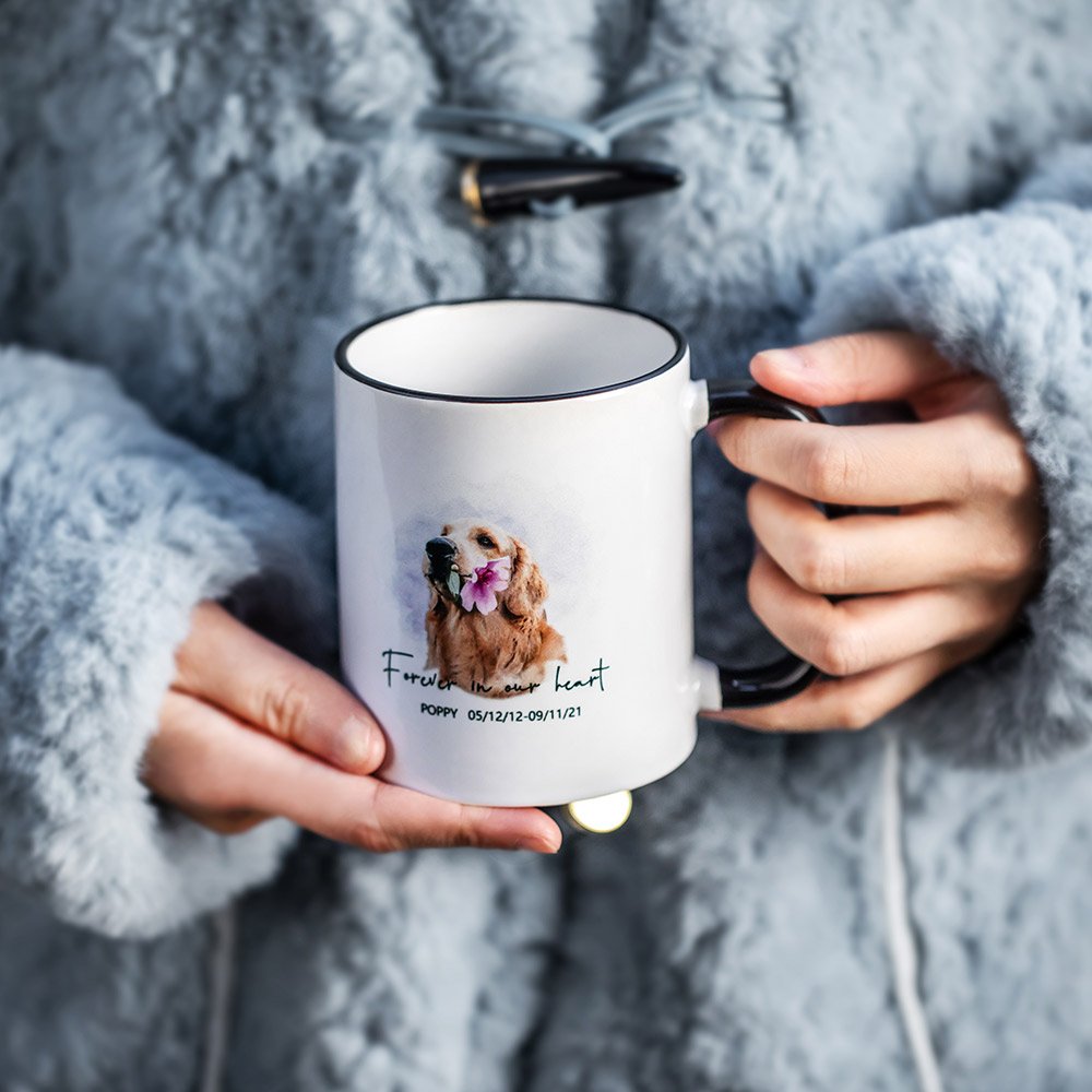 The unique feature of this mug is that the photos of deceased relatives or pets are transformed into watercolor effects to express their thoughts,and the mug can be printed with a name and date and a message of remembrance. It will make a great memorial gift for loss of loved one, sympathy gifts, remembrance gifts, bereavement gifts.