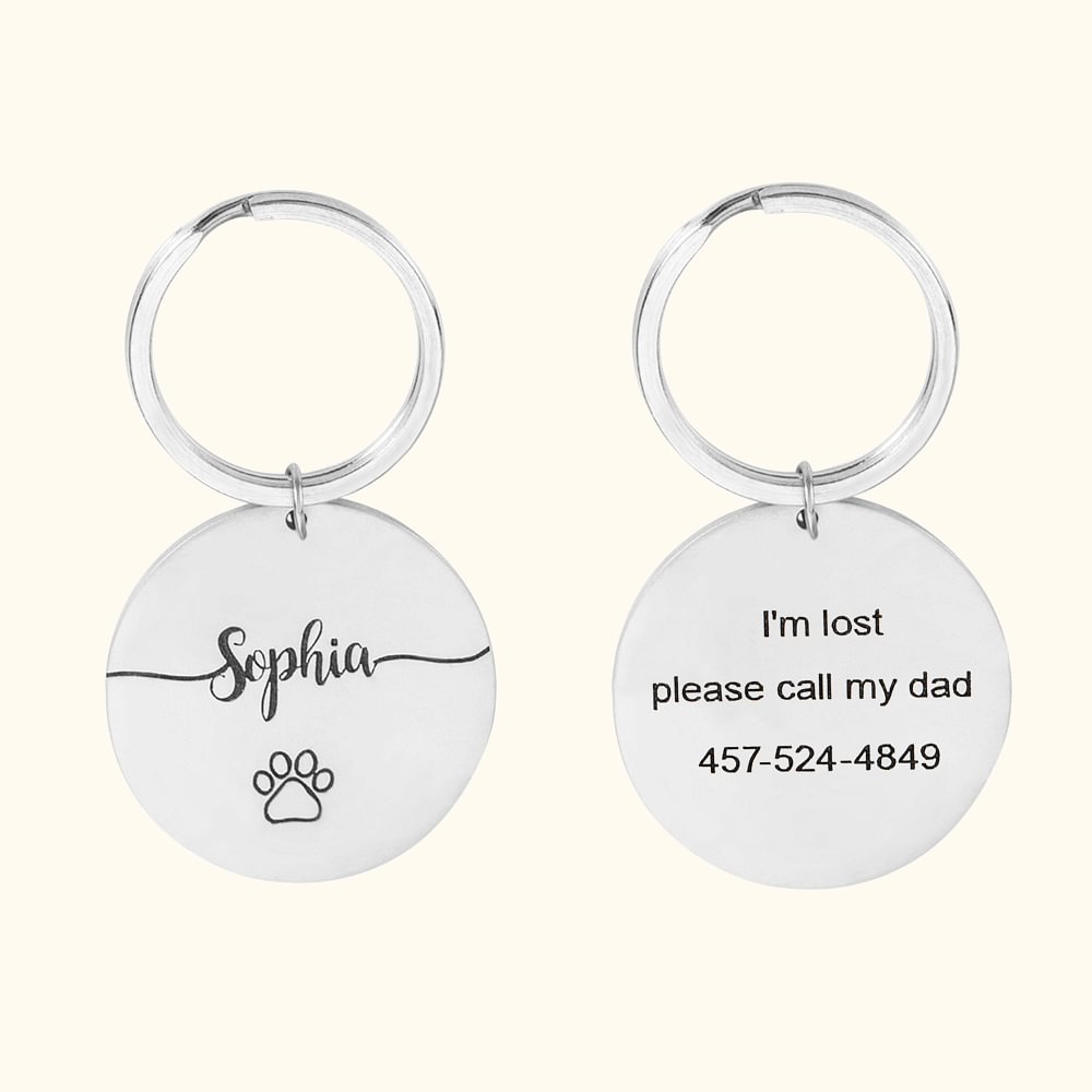The keychain can be fastened on the collar of the dog's neck to prevent the pet from being lost.