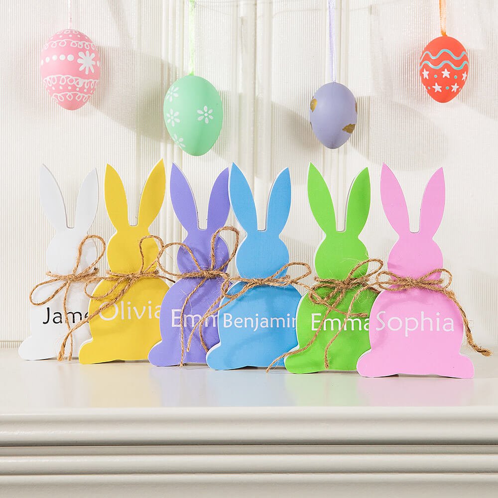 •Rabbits symbolize a new spring and a new life, a typical element on Easter Day. Spring is a new year's beginning. All kinds of colors can better stand for spring. Kids will loves these adorable bunnies with their names on them.