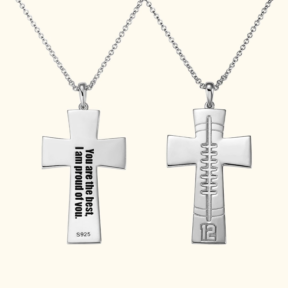 •Football pattern, cross shape, custom engraving, love of football, can be used to commemorate the youth of football, custom name or number (can be the number of your favorite player, or a number that means a lot to you) to show the uniqueness.