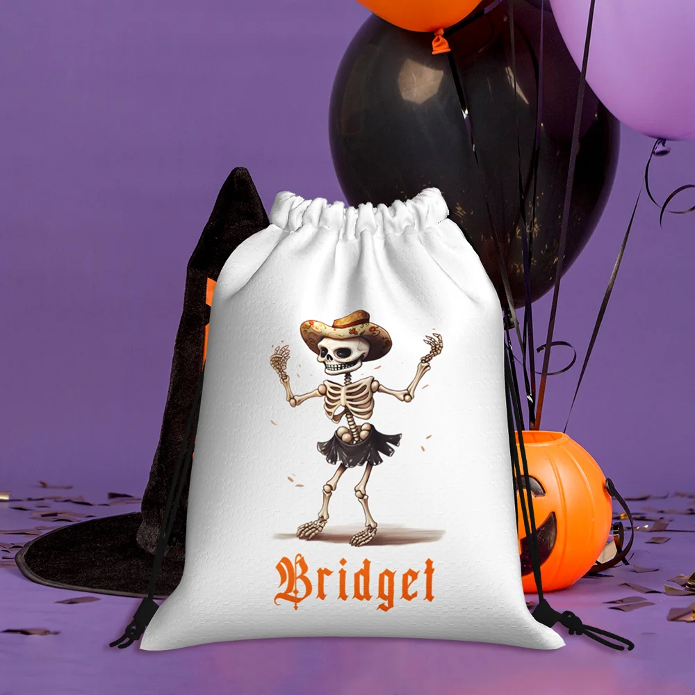 Price: ~$23.00 | Shop: Personalized Dancing Skull Drawstring Treat Backpack