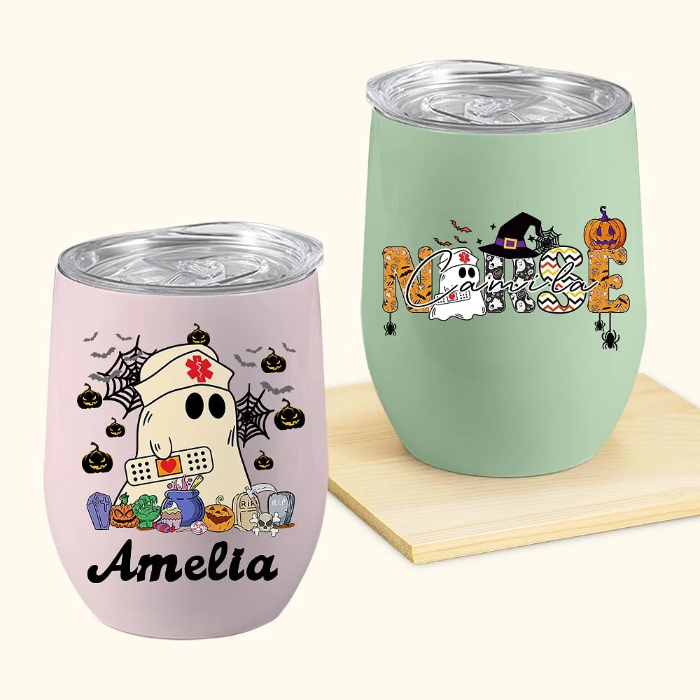 Shop It: Personalized Cute Ghost Nurse 12oz Wine Tumbler $31.00