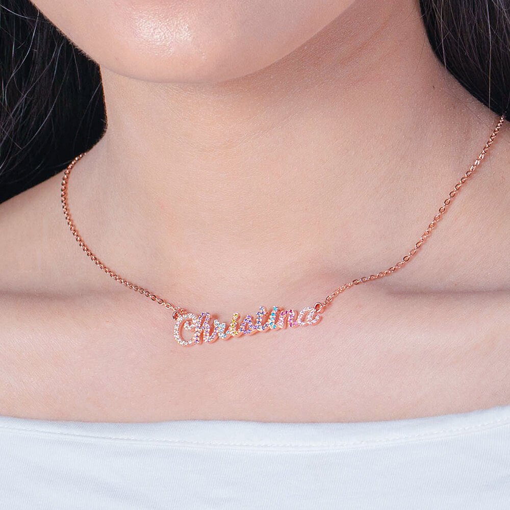 •Unlike ordinary name necklaces, the surface of this name necklace inlaid with colorful gemstones to make the name look more beautiful, sparkling, and even more unique to the wearer.