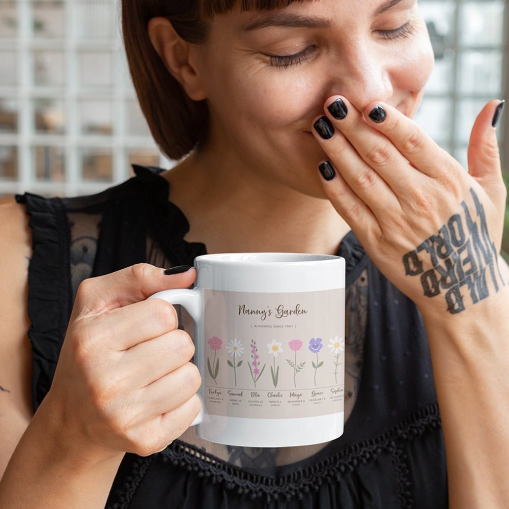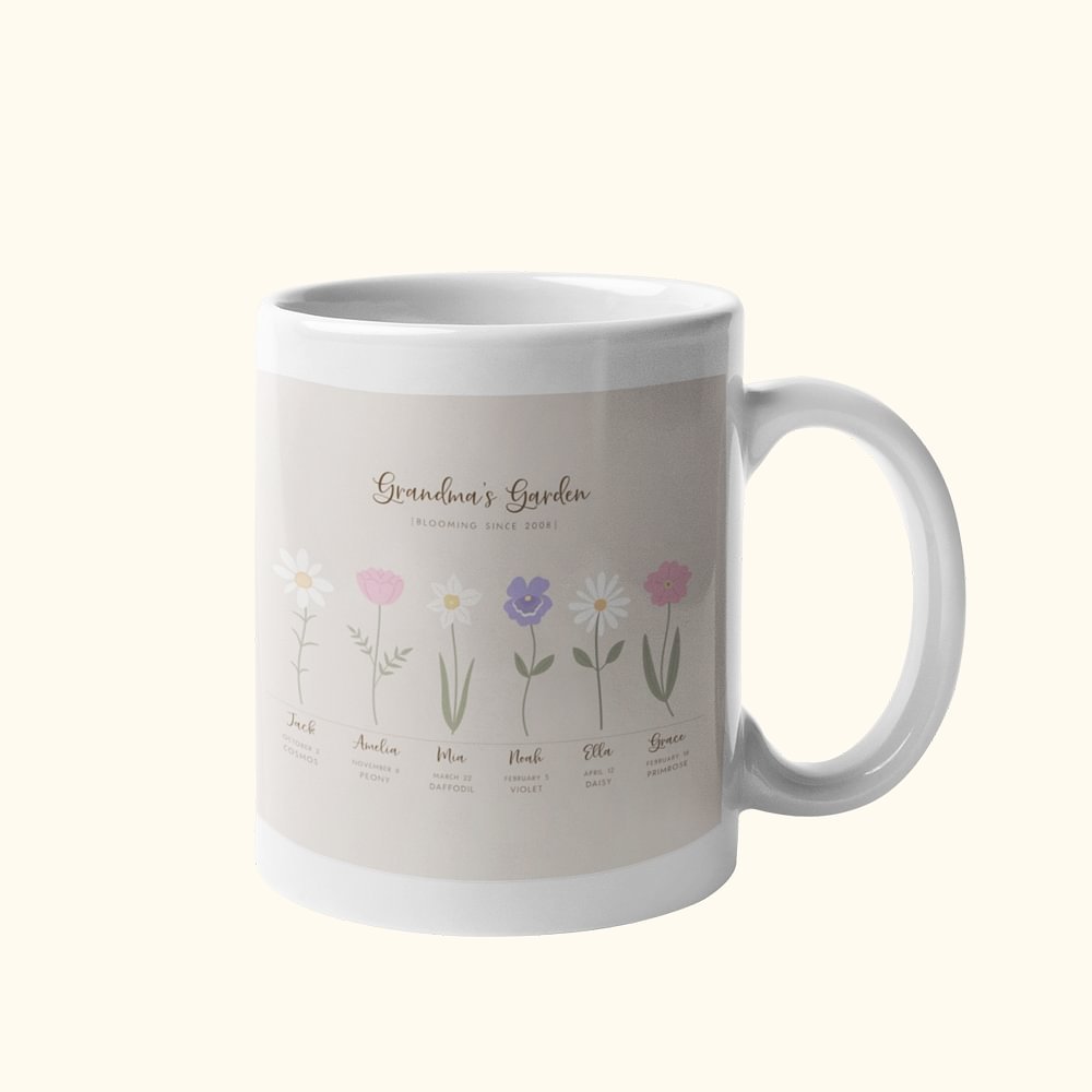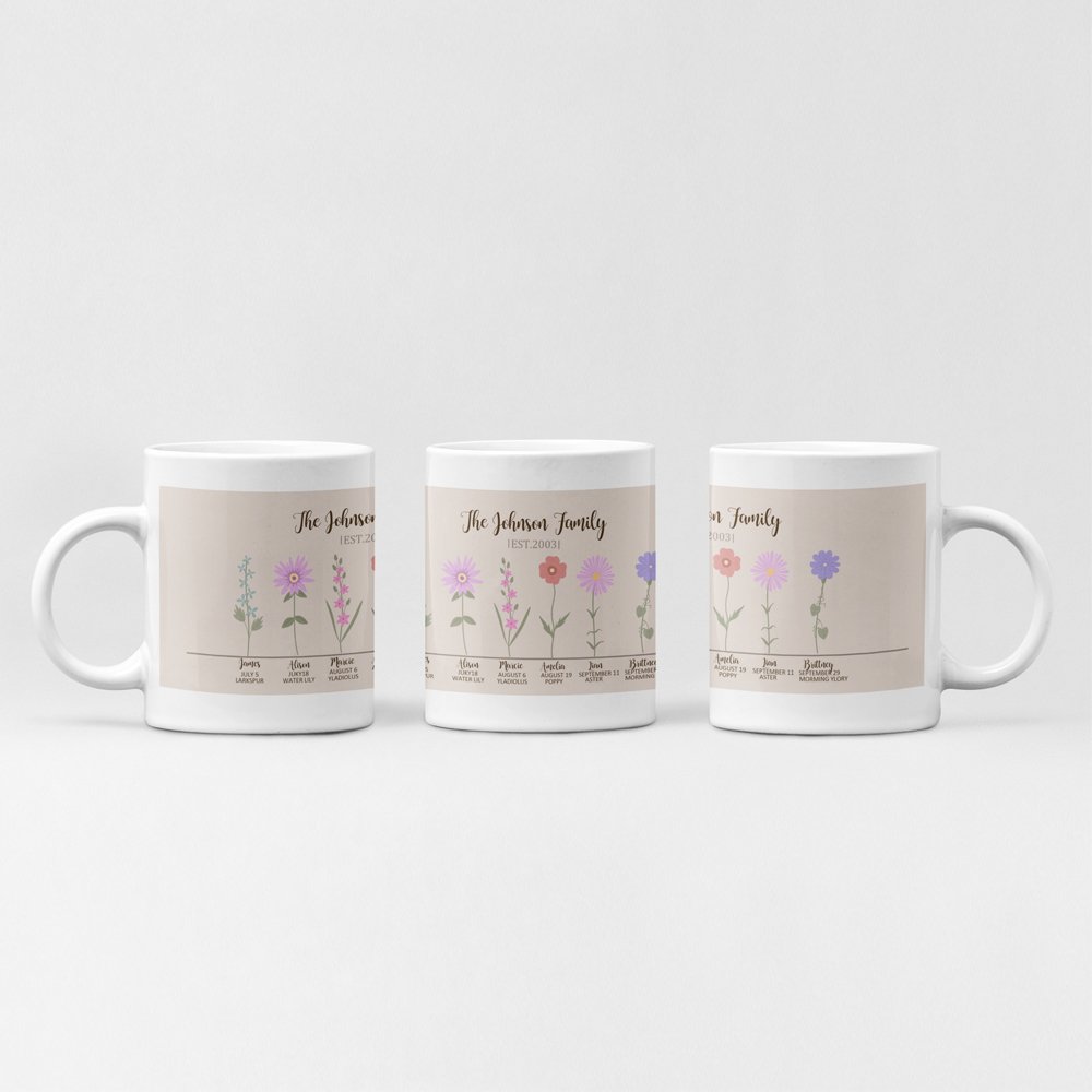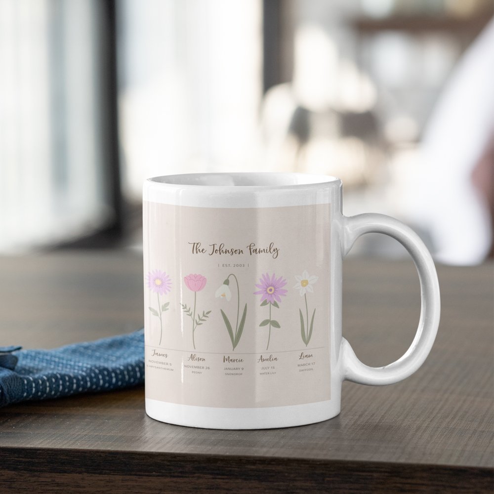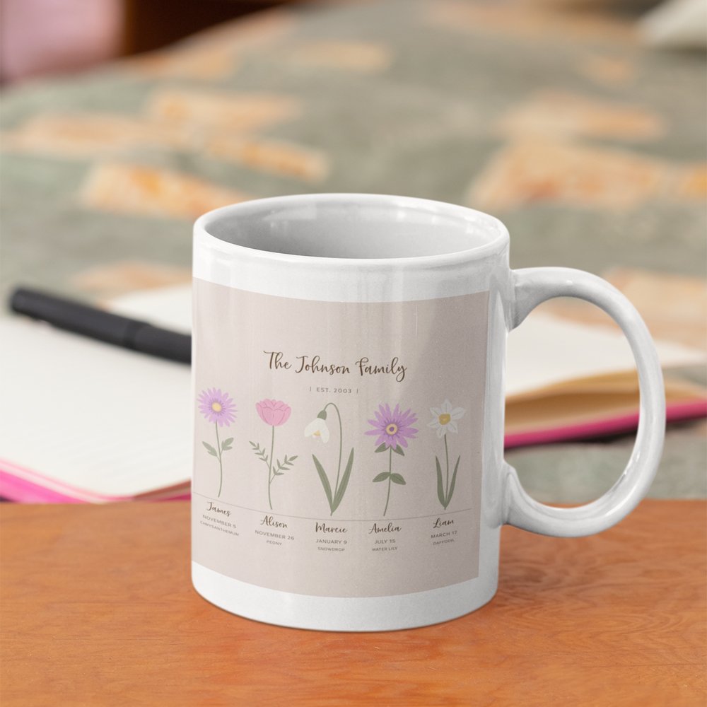 This modern and simple birth month floral mug makes the perfect birthday gift or Christmas gift for grandparents. Personalized birth flowers represent each family member, and you can mark their birth month to trace your vast family origins to add a special touch to your home decor.