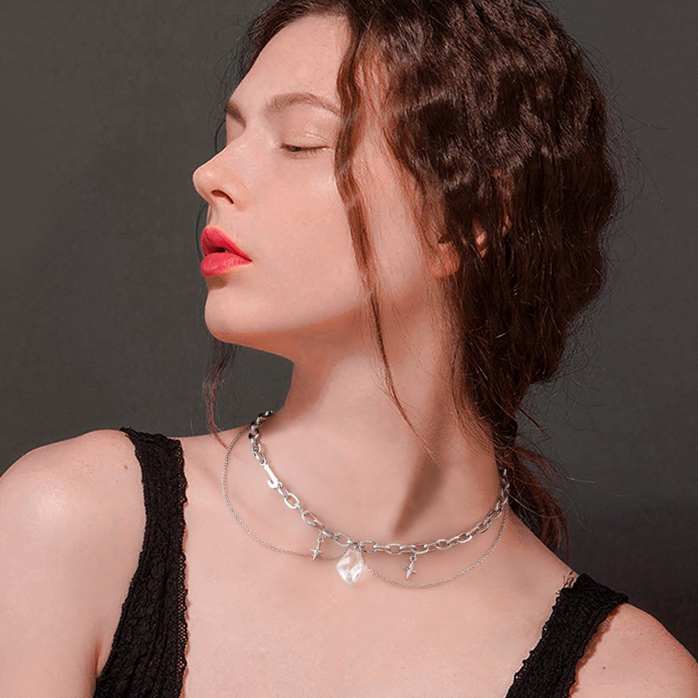 This is a gothic style crystal necklace, punk style necklace, silver choker necklace, carnival necklace, party choker. It has a unique design. Super cute and sexy design.