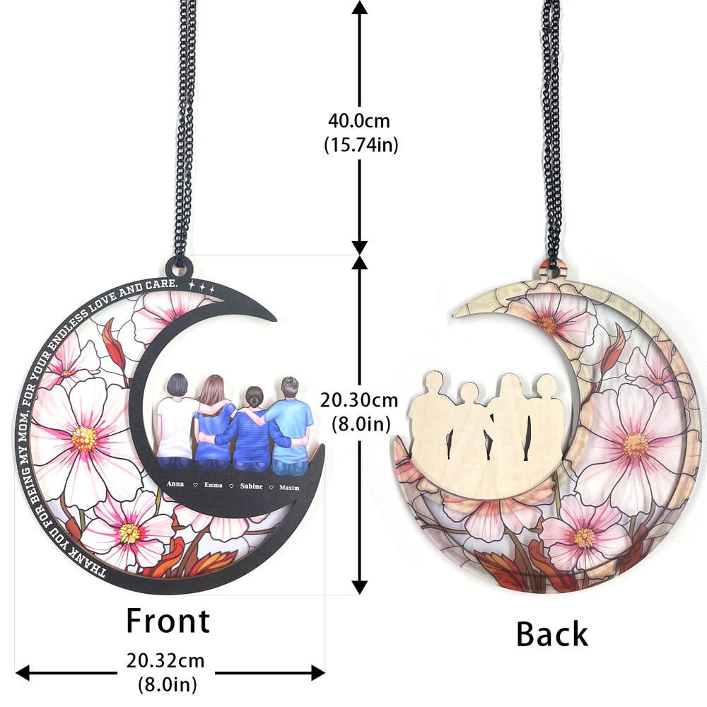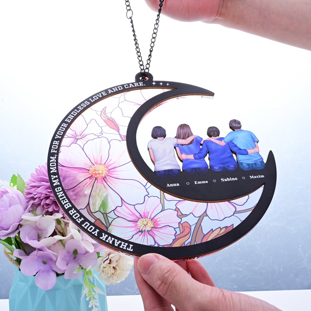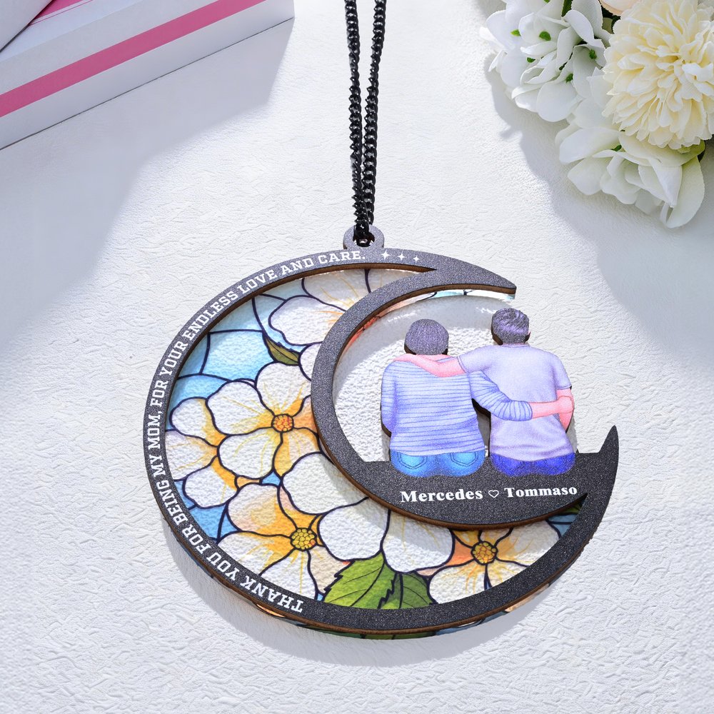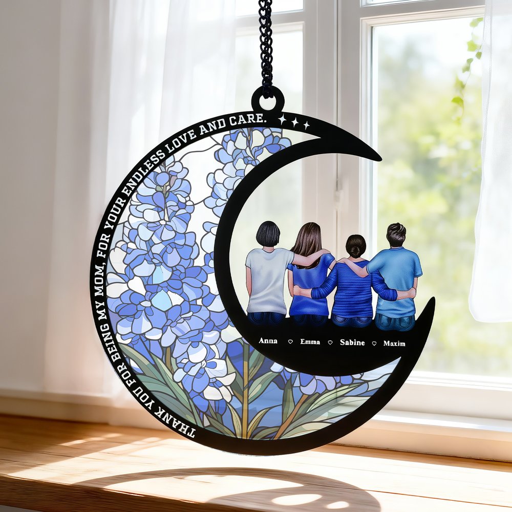 This suncatcher, themed around maternal love and time, features a delicate crescent silhouette. The inner side presents a heartwarming back embrace of mother and child, while the outer part is embellished with birth flowers. It also supports custom gratitude text and names, perfectly turning your everlasting love and care into a tangible token of sincere appreciation.