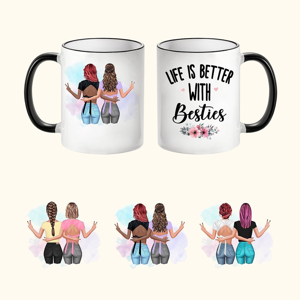 This is a great gift for your besties, customize this delicate mug with your name and your friend's name, it will make your gift look great with the beautiful background and the slogan "Life is better with Besties"!