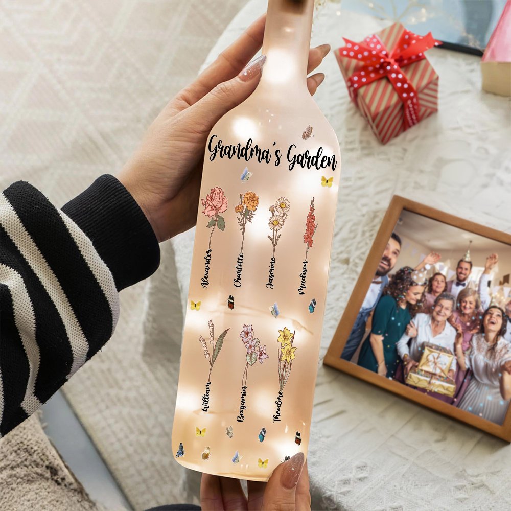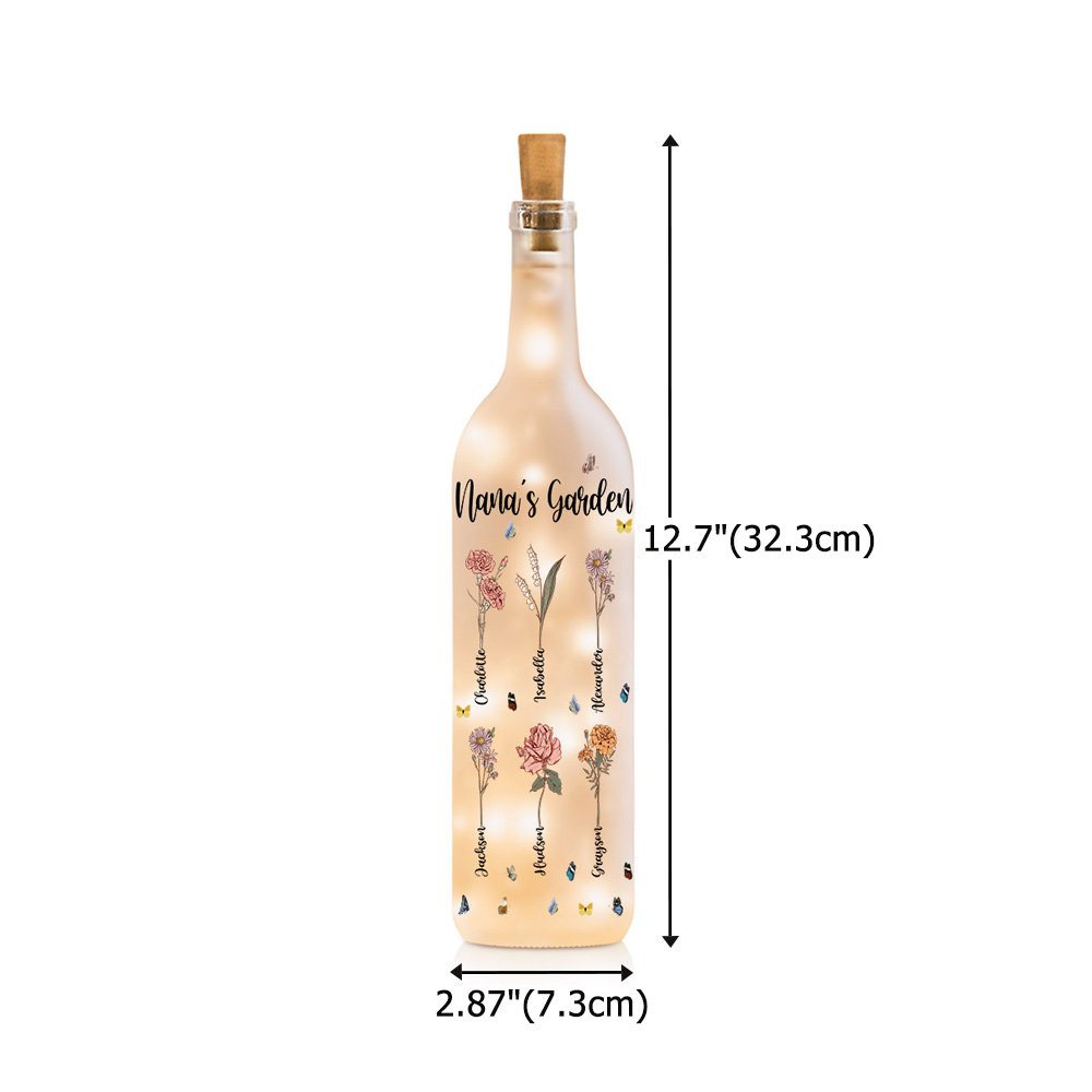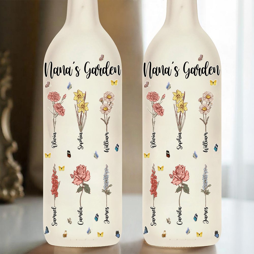 This enchanting bottle lamp features personalized 1-18 birth flowers and names; you can enter the title, "mom's garden, grandmom's garden," making it a memorable piece for any home. Celebrate special moments with a design that reflects the beauty of nature and personal connection.