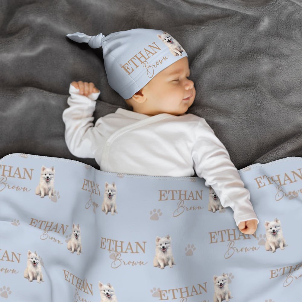 Made of high-quality materials, this baby set is very soft and comfortable. It is perfect for delicate newborn skin, while the high-quality print ensures that the personalized design stays alive and does not fade after washing. The hat comes with an adjustable knot at the top that can be tightened or loosened as needed to ensure comfort for newborns. The blanket has no zippers or buckles and can be wrapped or used as a blanket.