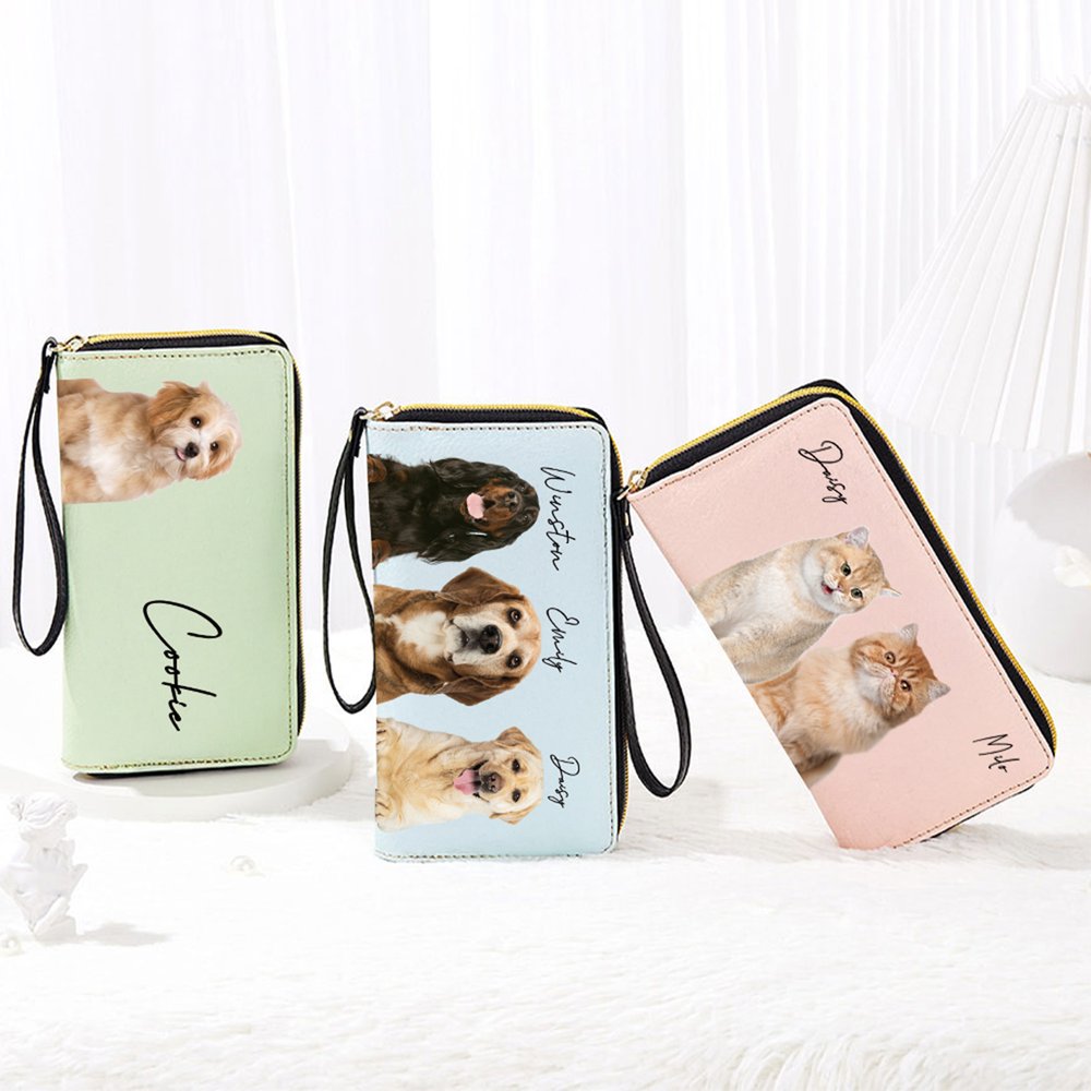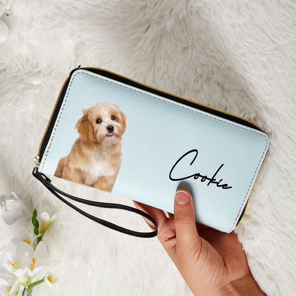 Featuring a fresh, soft hue, this wallet creates a warm and sweet atmosphere, perfectly suiting a woman's aesthetic. The surface of the wallet is meticulously printed with one to three lifelike pet photos, ranging from adorable dogs to lively cats, each one seemingly telling a story with its owner. The matching name makes the wallet truly unique.