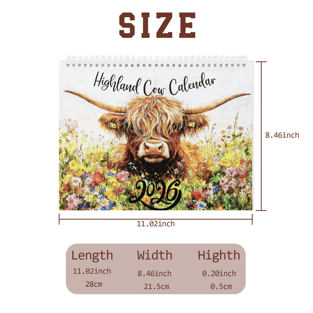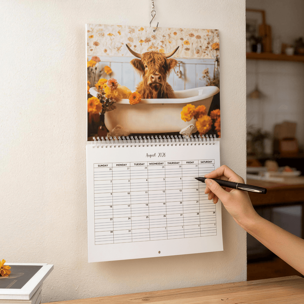 More than just a scheduling tool, this Highland cow calendar serves as warm, rustic wall decor for living rooms, kitchens, home offices, and farm-themed spaces. It’s perfect for tracking daily appointments, deadlines, and family plans, with clear monthly grids that offer ample writing space. Whether at home, in a cottage, or in a cozy workspace, it seamlessly blends practical planning with countryside charm.