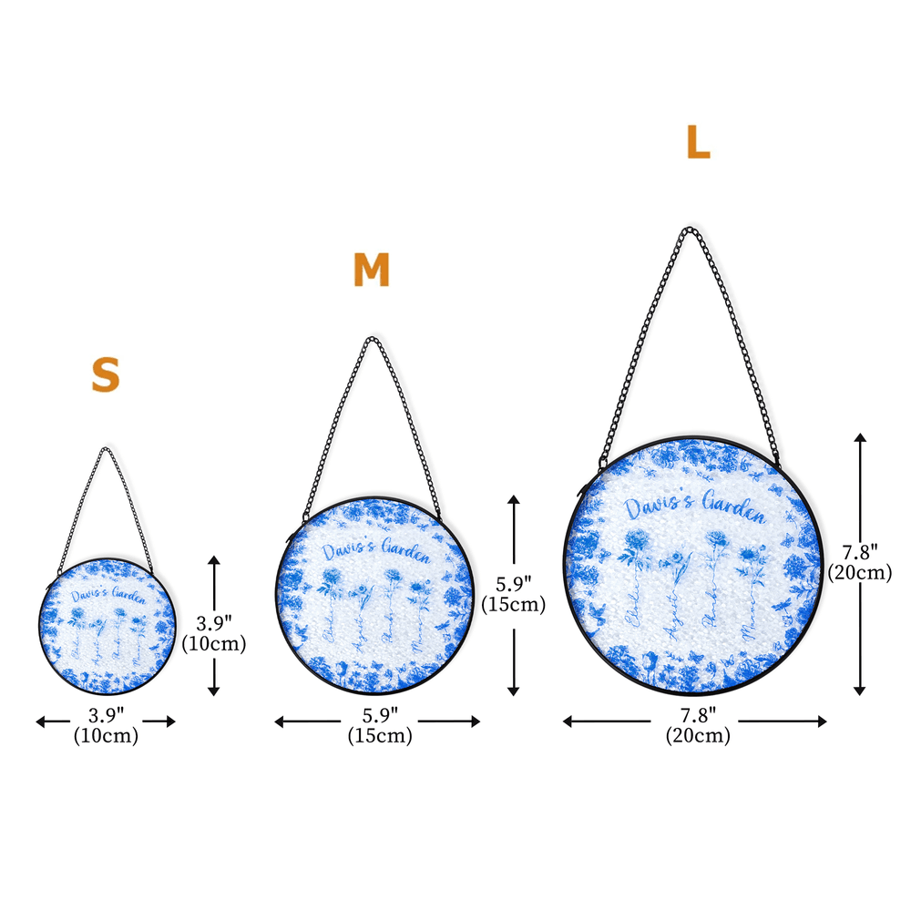 Inspired by the classic elegance of French toile de Jouy, this suncatcher reflects the charm of a blooming garden retreat. The artwork blends lush florals with delicate butterfly accents, creating a romantic, vintage aesthetic. Personalization options include six vivid pattern colors and carefully chosen birth flowers representing each family member. By adding a custom family surname with the signature “Garden” text, the piece becomes a meaningful symbol of family heritage, growth, and shared memories.