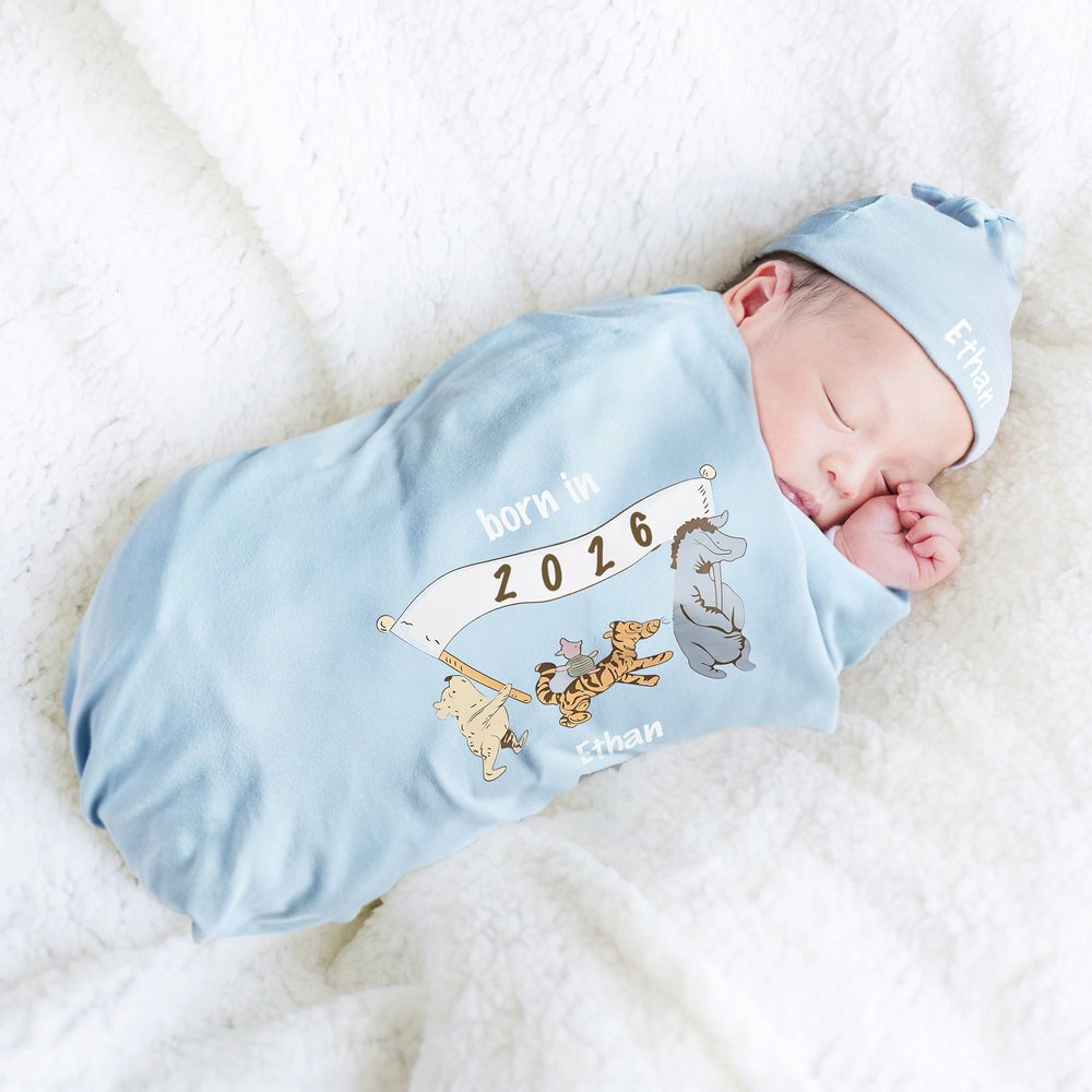 This adorable baby set features the beloved classic Winnie the Pooh, created by the renowned author A. A. Milne and has captured the hearts of generations. The design incorporates playful shades of pink, blue, and white, exuding a strong sense of childhood joy and warmth. Itβs perfect for both baby boys and girls, allowing every little angel to feel the love and blessings from their family.