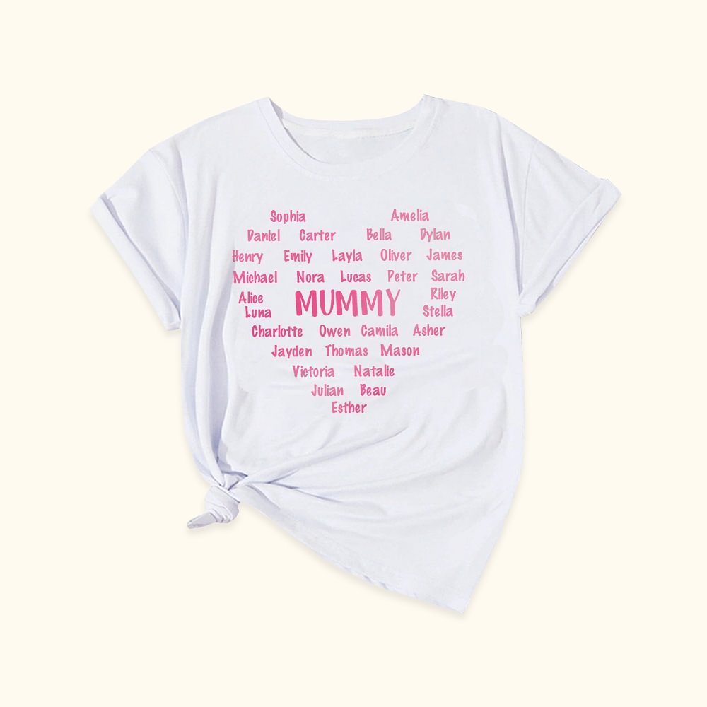 Whether it's Mother's Day, a birthday, or a special milestone, the heart T-shirt is a meaningful and heartwarming gift. The personalized names and the heartfelt design make it a unique and cherished present that mom or grandma will treasure. It allows them to carry their loved ones close to their heart, wherever they go.