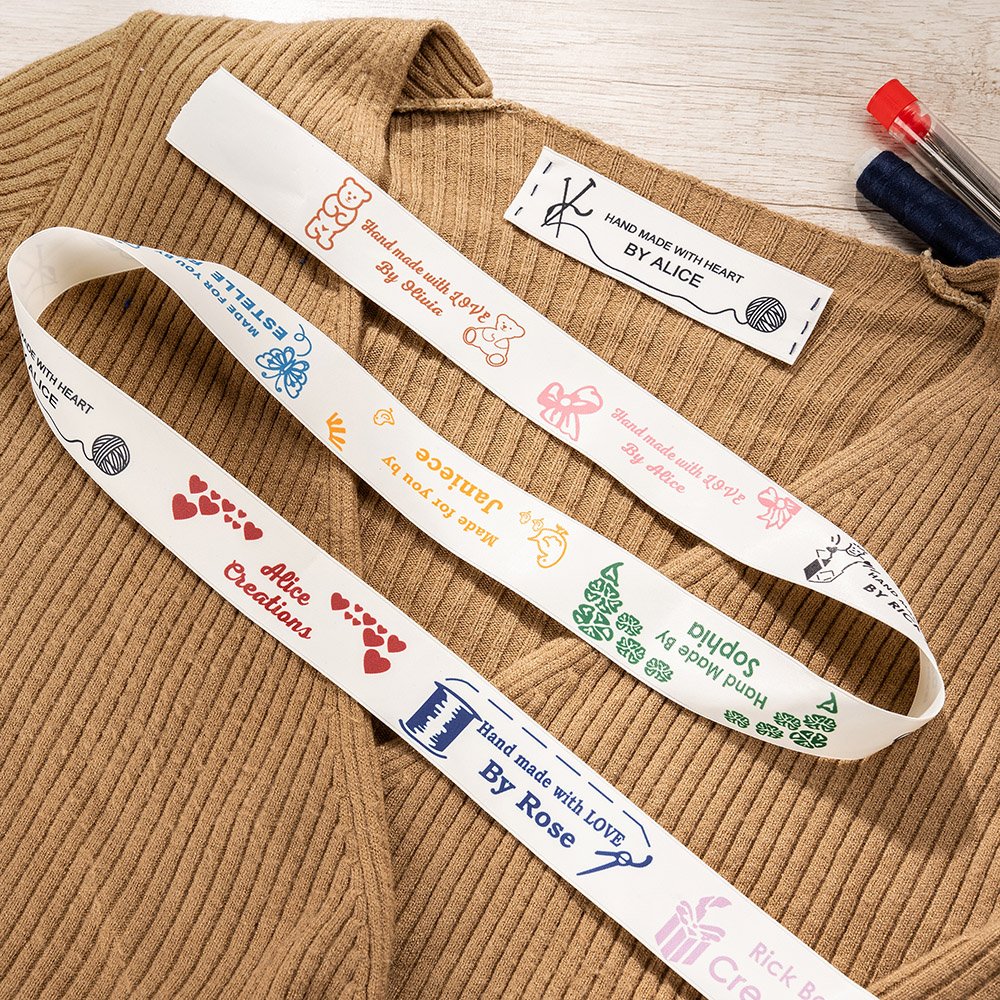 Crafted with the utmost care and attention to detail, these sewing labels are made from high-quality materials. The fabric is soft, durable, and resistant to fraying, ensuring that your labels will stay intact even after multiple washes. The printing is vibrant and long-lasting, with sharp colors and clear details that won't fade over time. The edges are neatly finished, making them easy to sew onto any fabric without causing any damage.