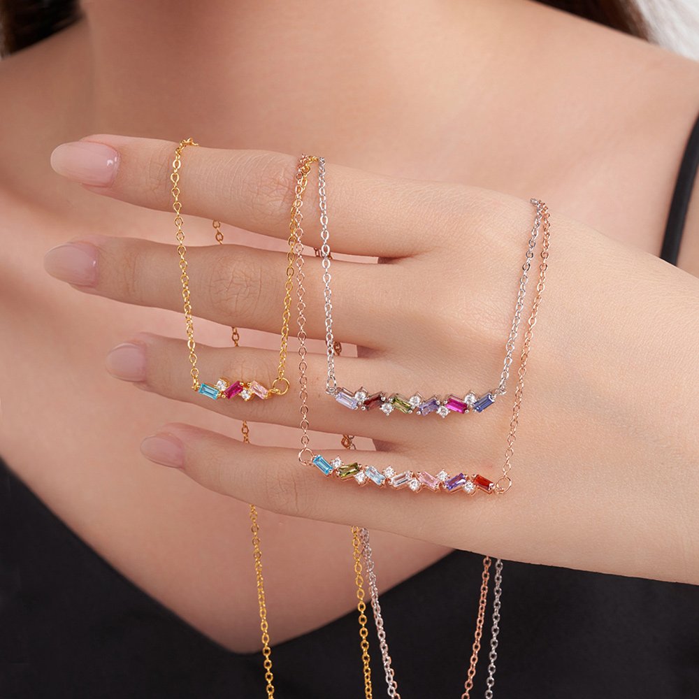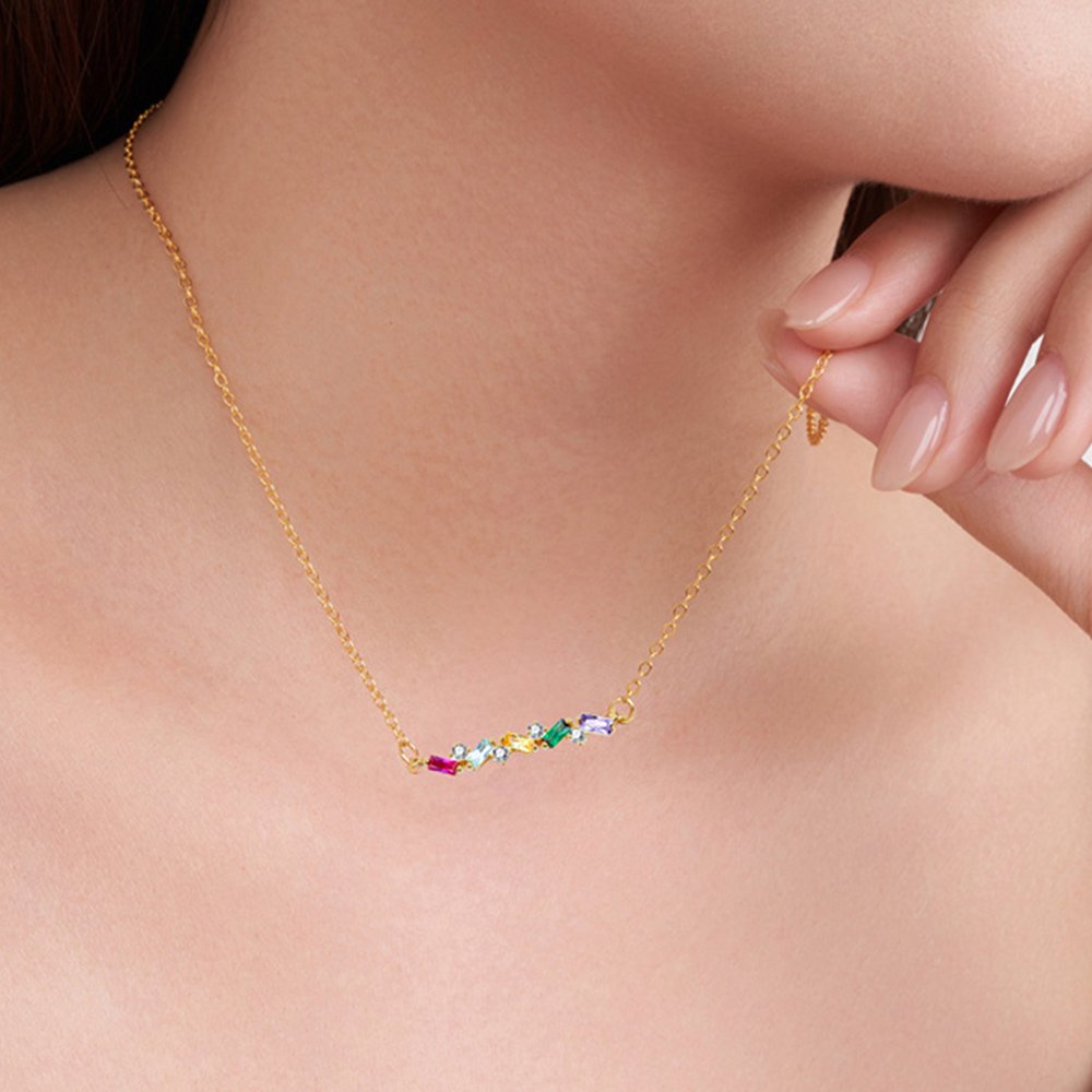 Celebrate the bond of motherly love with our exquisite birthstone necklace. Its unique zigzag shape is a beautiful representation of family ties, and is personalized to capture the essence of each family member. You can choose from 2-7 birthstones, with a small zircon between each pair, strengthening the connection and love between each other, creating a keepsake she will cherish forever.