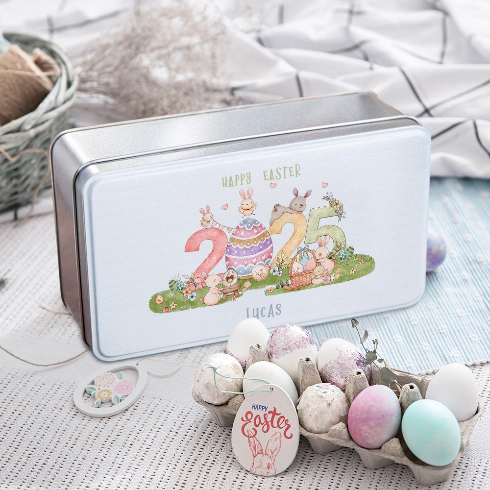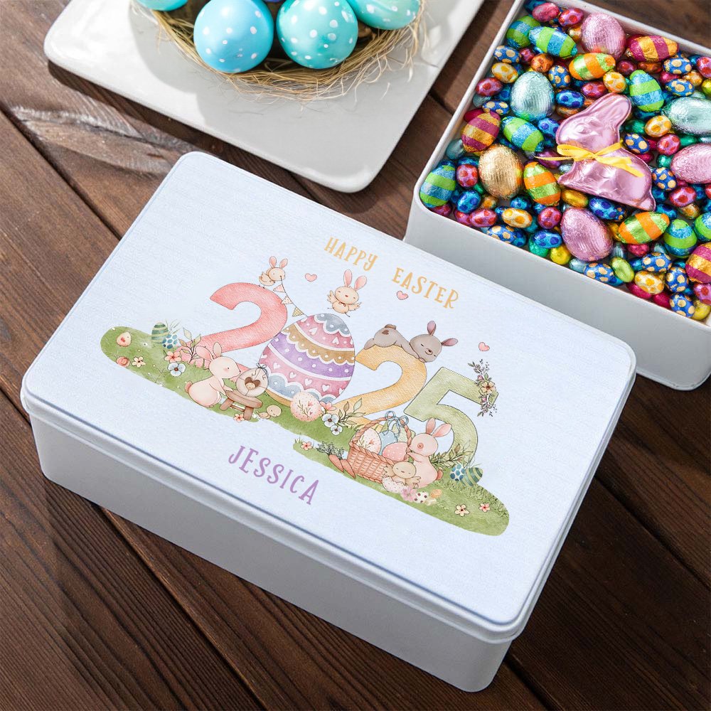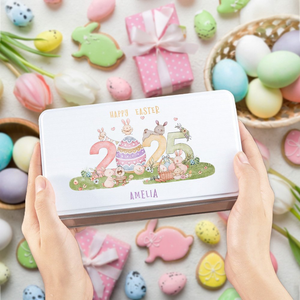 This 2025 Bunny Easter Egg Pattern tin box comes in two patterns for you to choose from. You can also customize it with your name and give it to them as a gift on Easter. This is sure to be an unforgettable gift.
