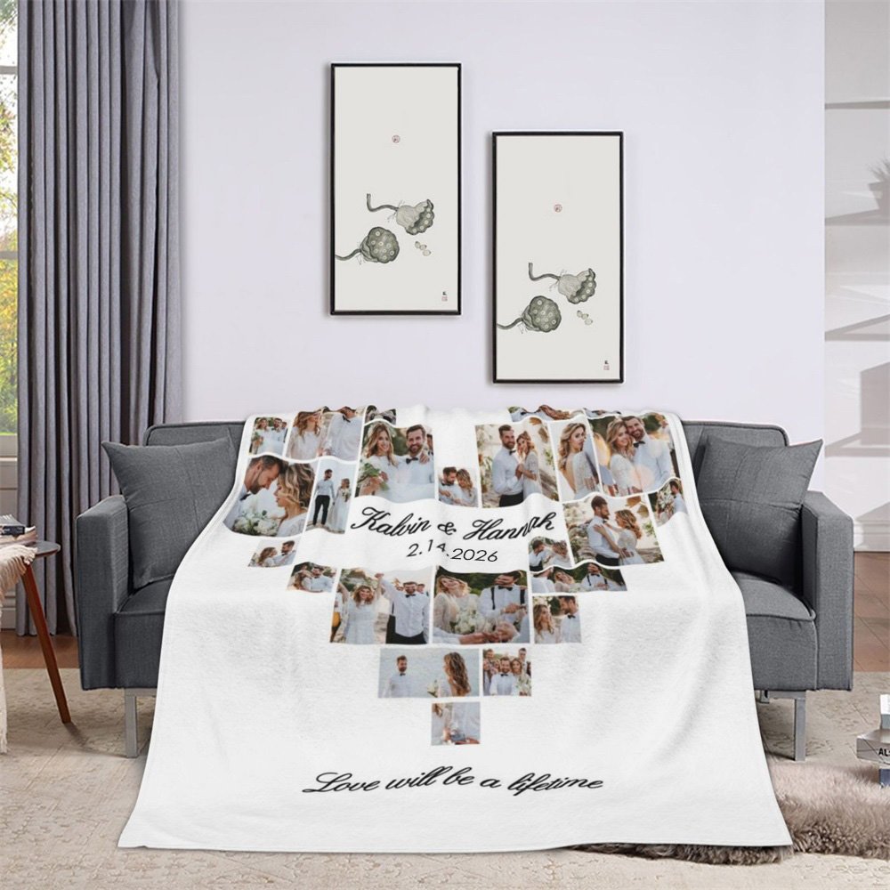 Whether you're celebrating a milestone anniversary, commemorating your wedding day, or surprising a special couple, this personalized blanket is an ideal gift choice. This is more than just a blanket, it is a cherished keepsake that encapsulates the love and memories shared between couples. Share the warmth of your love story with this unique and heartfelt gift!