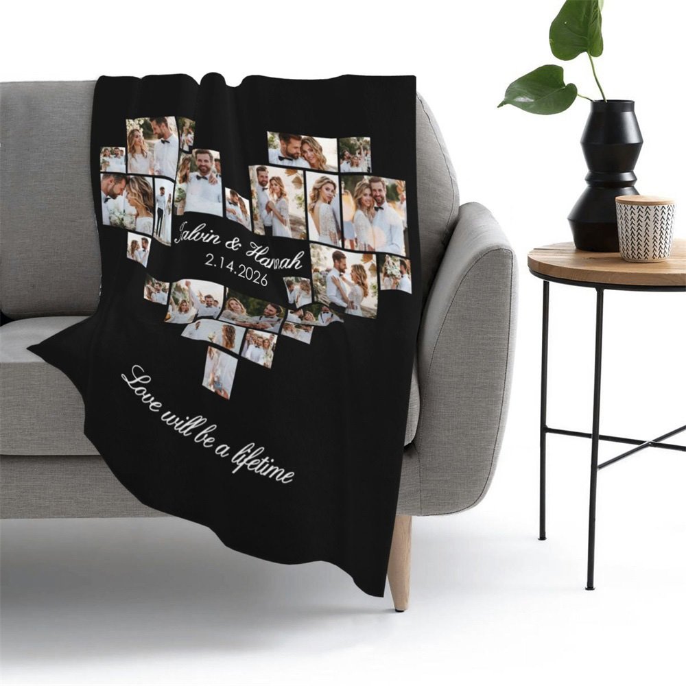 Immerse yourselves in a heartwarming journey down memory lane by personalizing this blanket with a 24 photos that your most cherished photos. Our photo collage blanket allow you celebrate love story by showcasing moments that hold special significance β from precious snapshots captured during romantic dates to memorable milestones shared together. This thoughtful customization makes it an extraordinary gift for Valentine's Day or a wedding celebration.