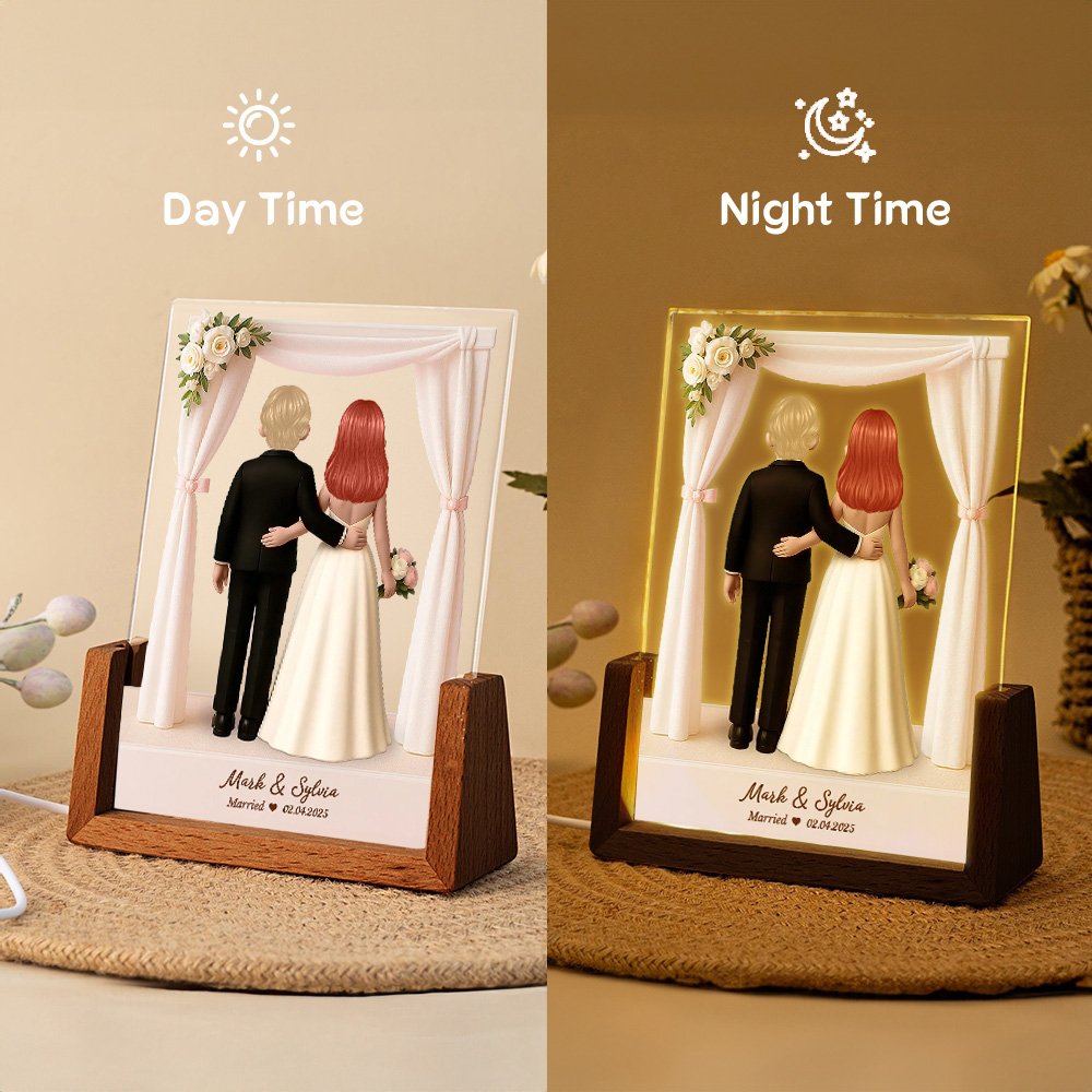 This night light is themed on weddings. You can customize the exclusive cartoon patterns of the bride and groom according to your needs, vividly recreating the classic scenes of the wedding; you can also add exclusive text and names to the night light, making this work not only a decoration but also a carrier of a beautiful memory.