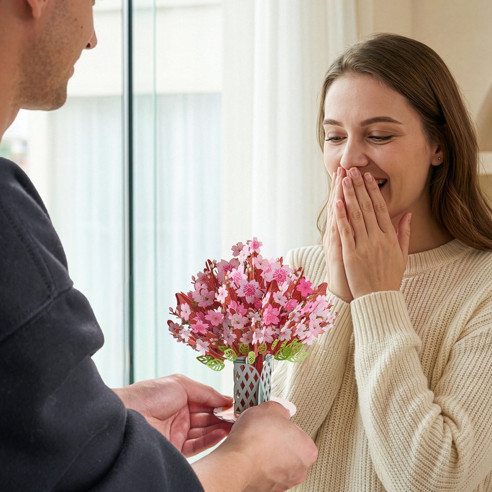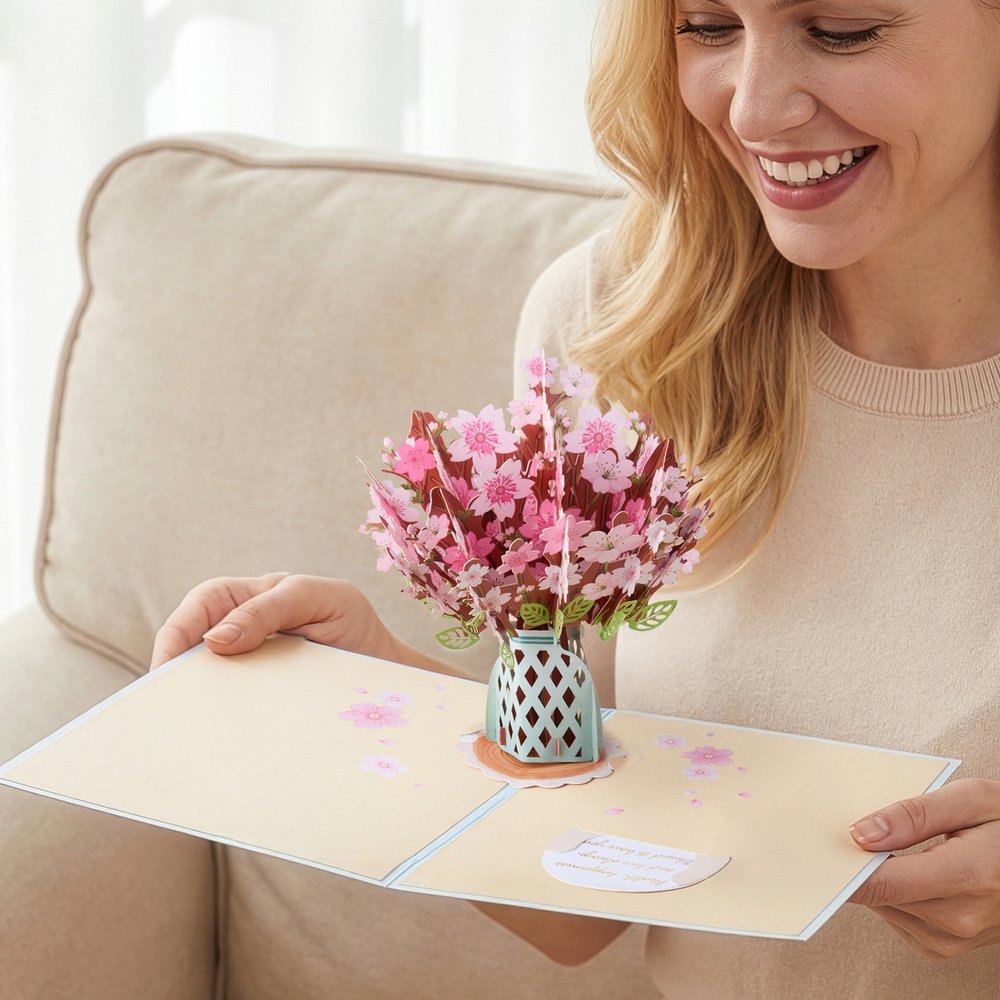 This greeting card features an exquisite 3D bouquet design that unfolds to reveal a full floral arrangement. It comes with customizable messages, and the 3D bouquet inside can be detached and placed anywhere you like, creating a truly special occasion that perfectly blends sentiment and aesthetics.