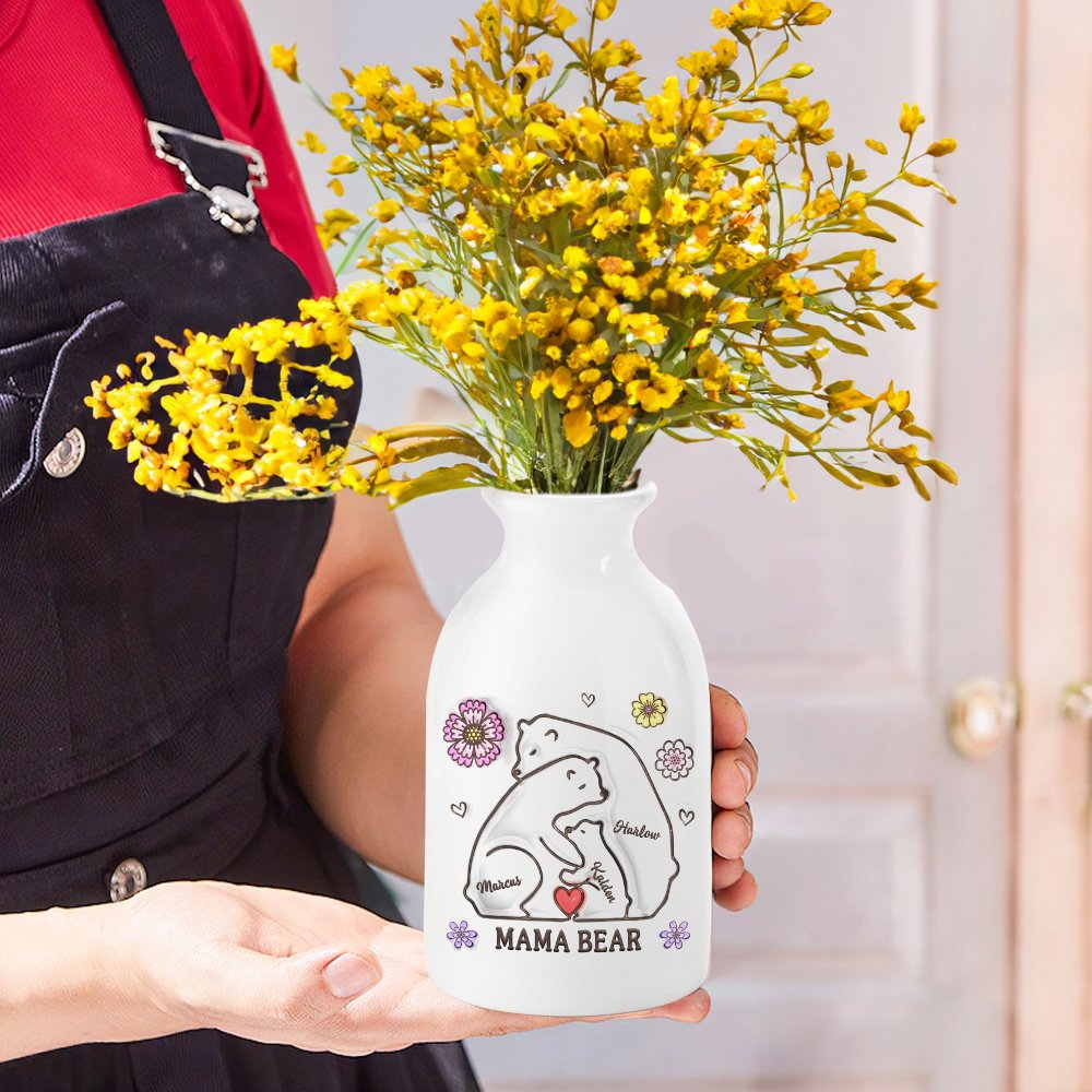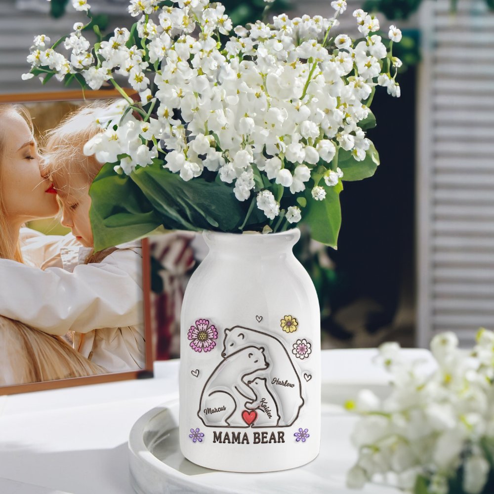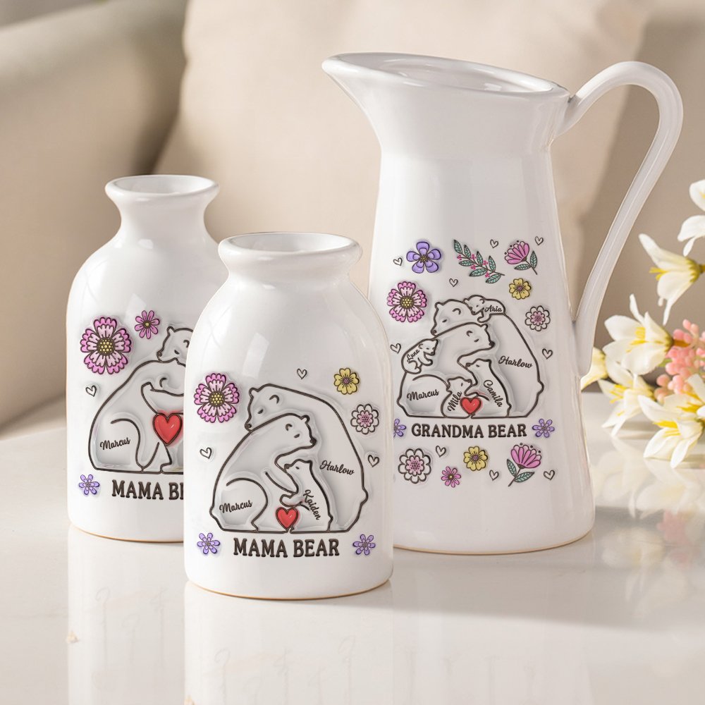 Surprise mom or grandma with this hugging-bears ceramic vase on their birthday or anniversary. The heartwarming and personalized design creates a meaningful gift that will warm their hearts and remind them of the love they share with their family.
