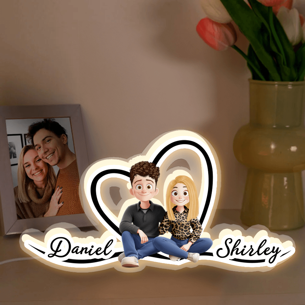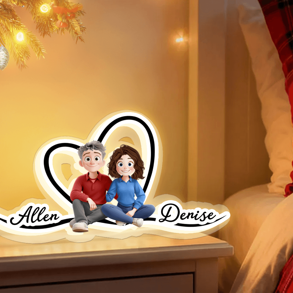 Personalized 3D Style Cartoon Character Acrylic LED Night Light with Name Home Decor Valentine's Day Gift for Couple