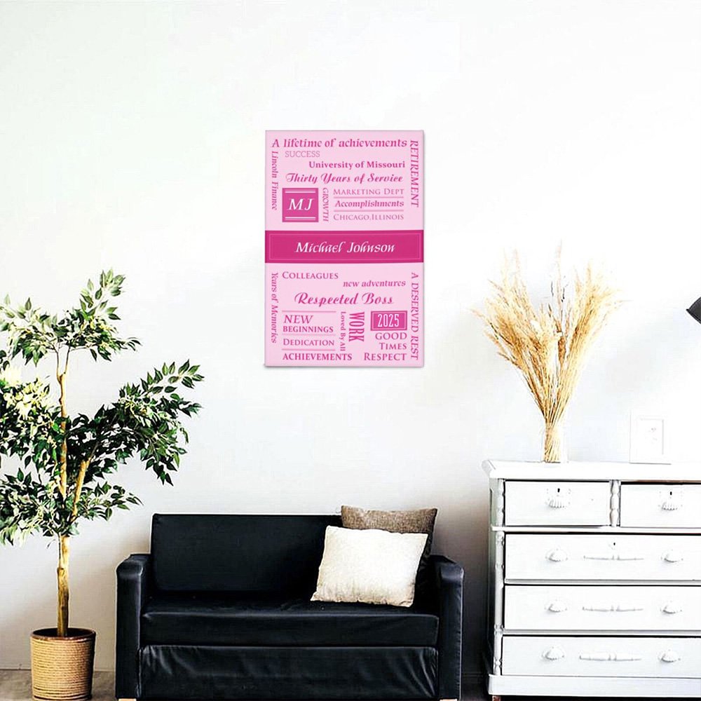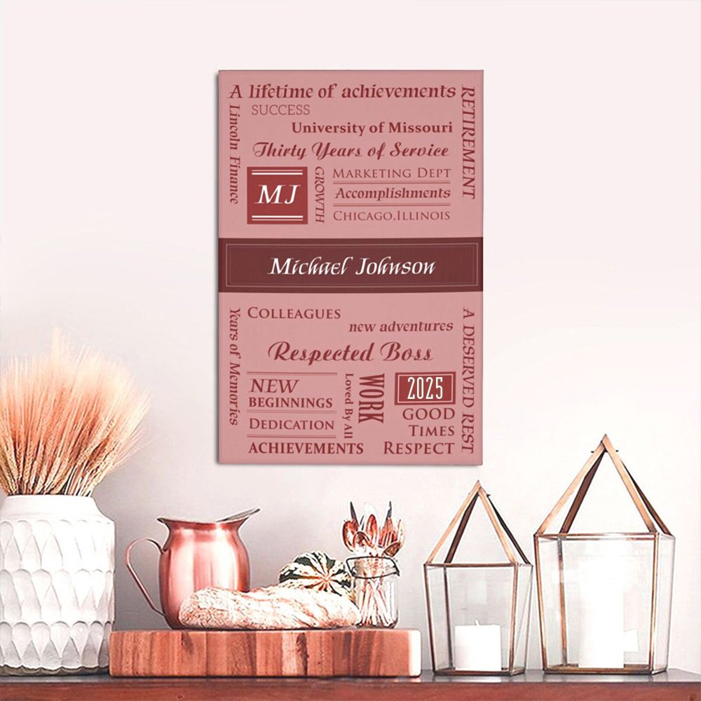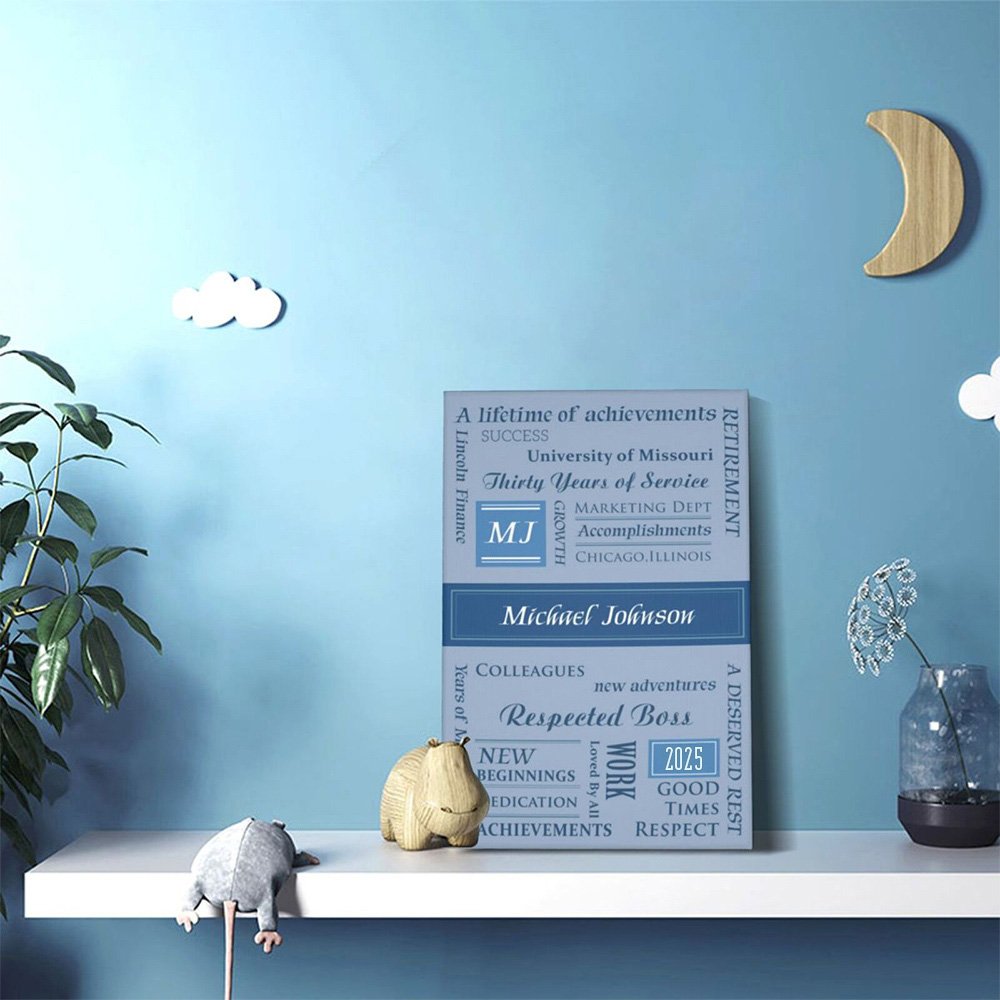 The design of the canvas painting is carefully customized to include significant milestones and achievements from their professional journey. You can customize the text as you want, like the first job to promotions, awards, or special memories, every step of their career can be beautifully printed on the painting. This is a thoughtful gift that captures all the important moments from their career.