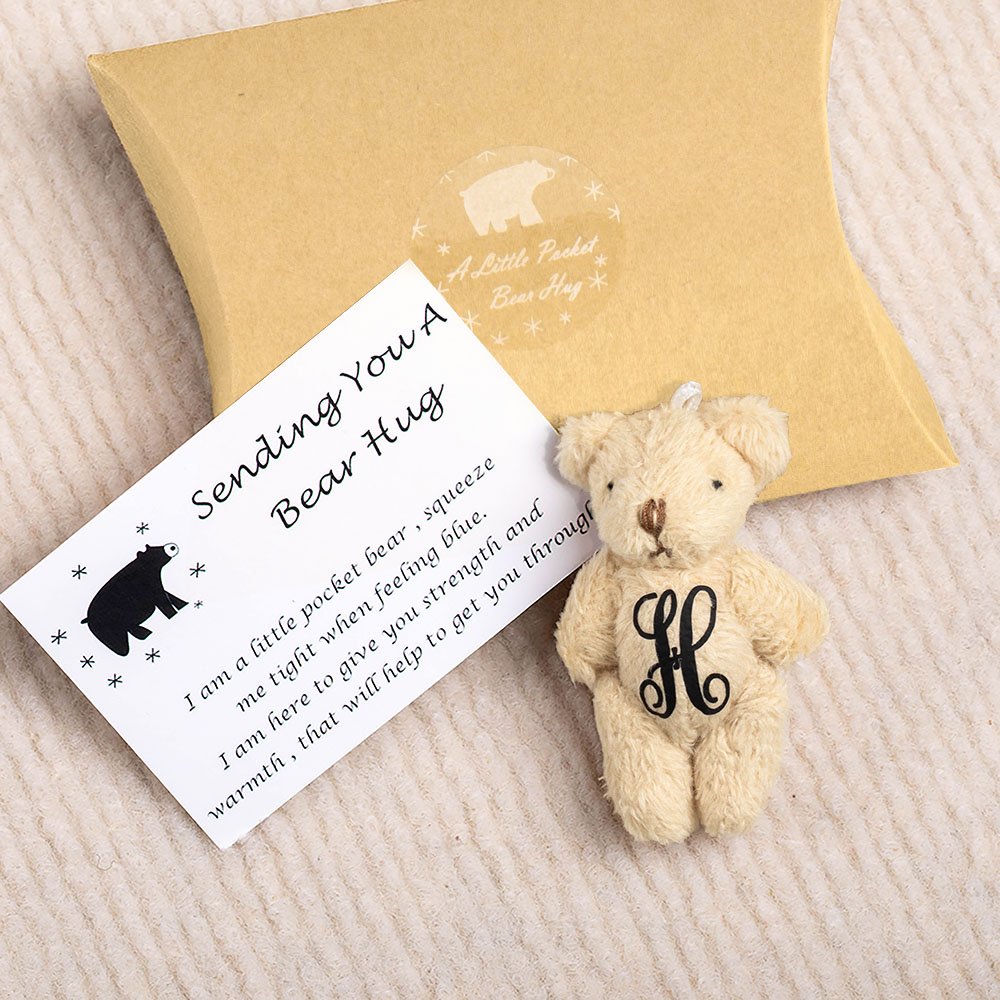A little pocket bear ready to give bear hugs to whoever needs one. Letting someone know you're there for them. can be carried with you the encouragement and ease anxiety, can even be placed next to your pillow, accompany you through countless nights. Send to someone you know thatโs having a difficult time and needs a reminder of how loved they are.