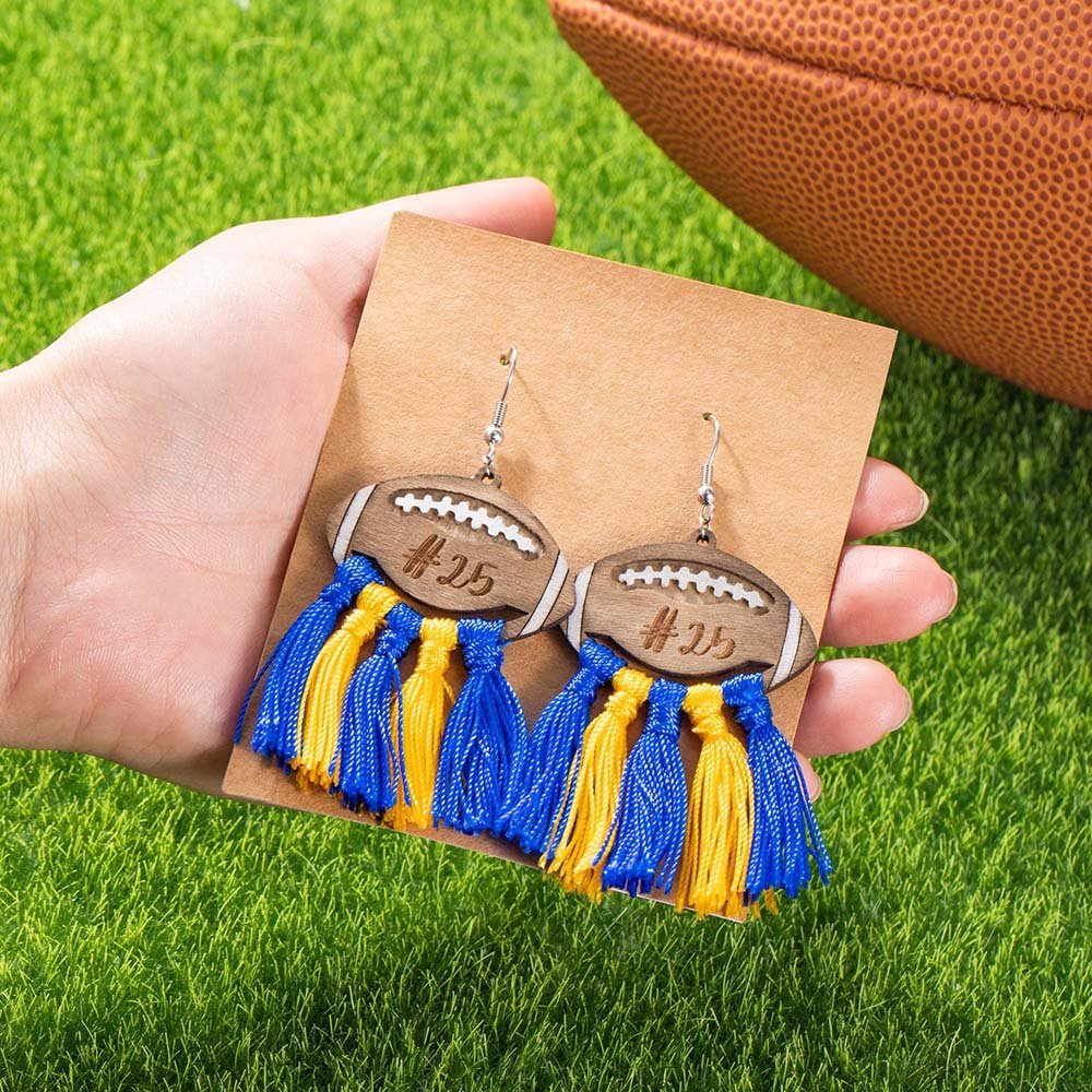 The tassels attached to the football-shaped wood pieces give these earrings a dynamic feel. As you cheer for your team, the tassels will sway with every gesture, making them a fun and animated fashion statement.