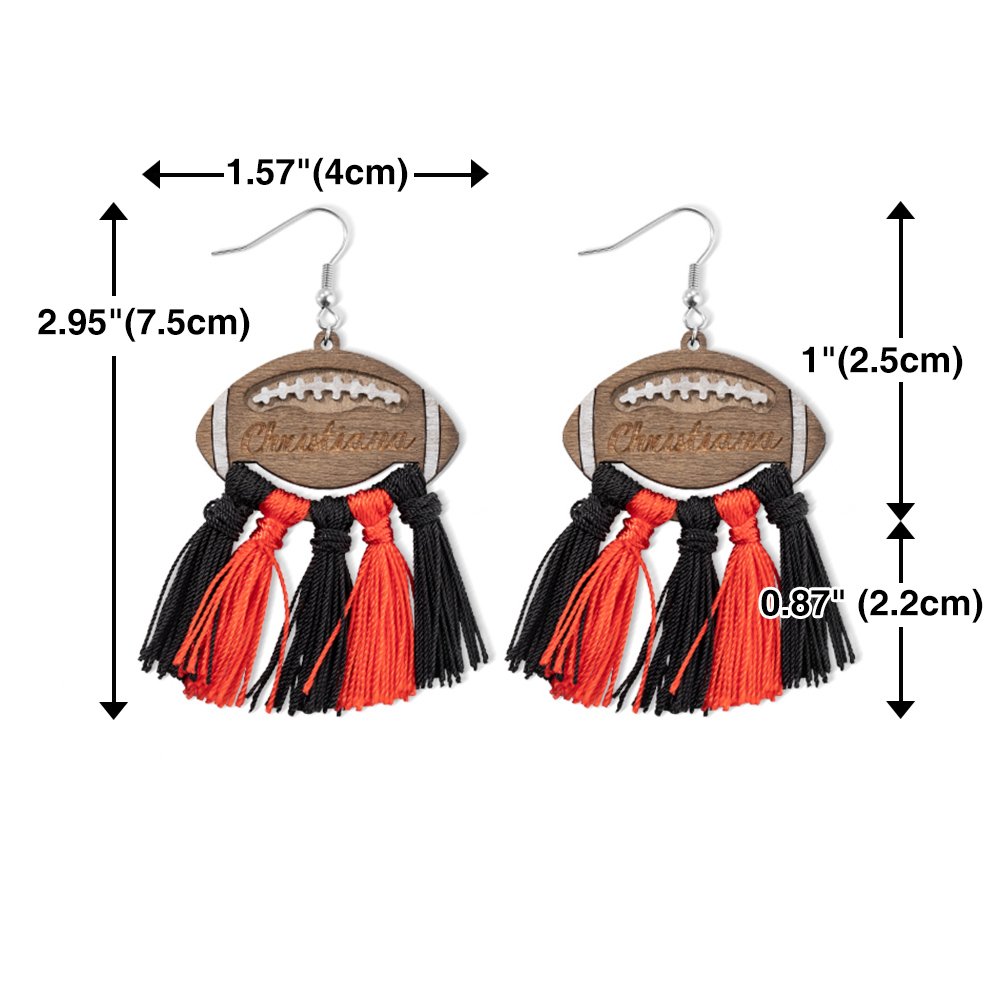 | Measurement: | Drop Length - 2.95"(7.5cm) Football - Length 1.57"(4cm), Width 1"(2.5cm) Tassel Length - 0.87"(2.2cm) |