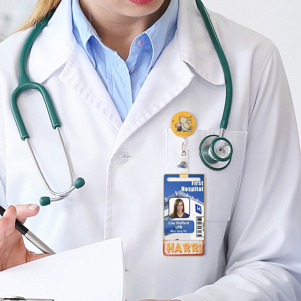 This badge with the cute Pooh Bear created by the renowned author A. A. Milne has captured the generations' hearts. Available in several styles, it is perfect for family members and friends who work in the medical industry around you.