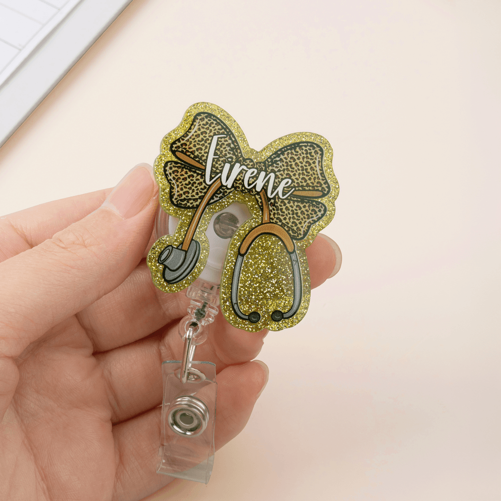 Personalized Acrylic Bow Stethoscope Badge Reel with Name Daily Use Nurses' Day Gift for Nurses Doctors