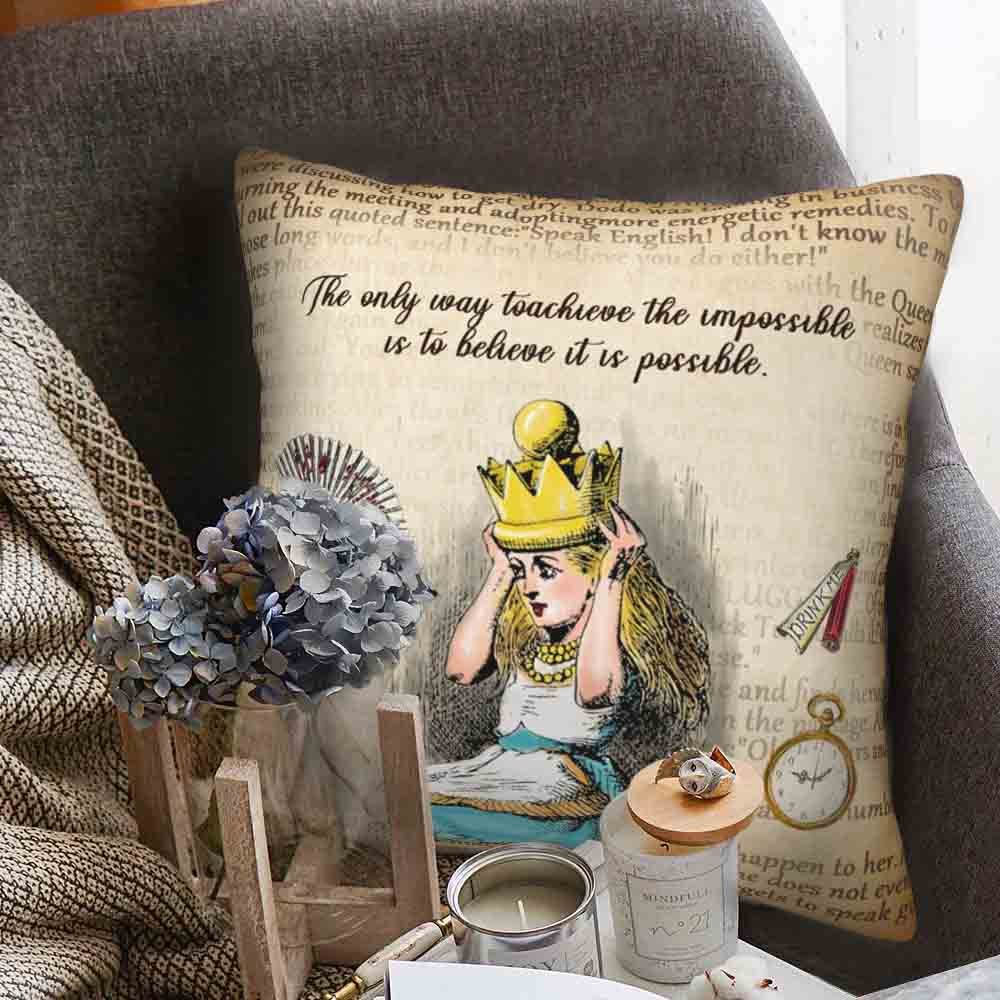 This cushion case is designed with the theme of Alice, with a classic and lovely background pattern, and can be customized with the line copy of "The only way to achieve the impossible is to believe it is possible".This is the most meaningful gift for child.