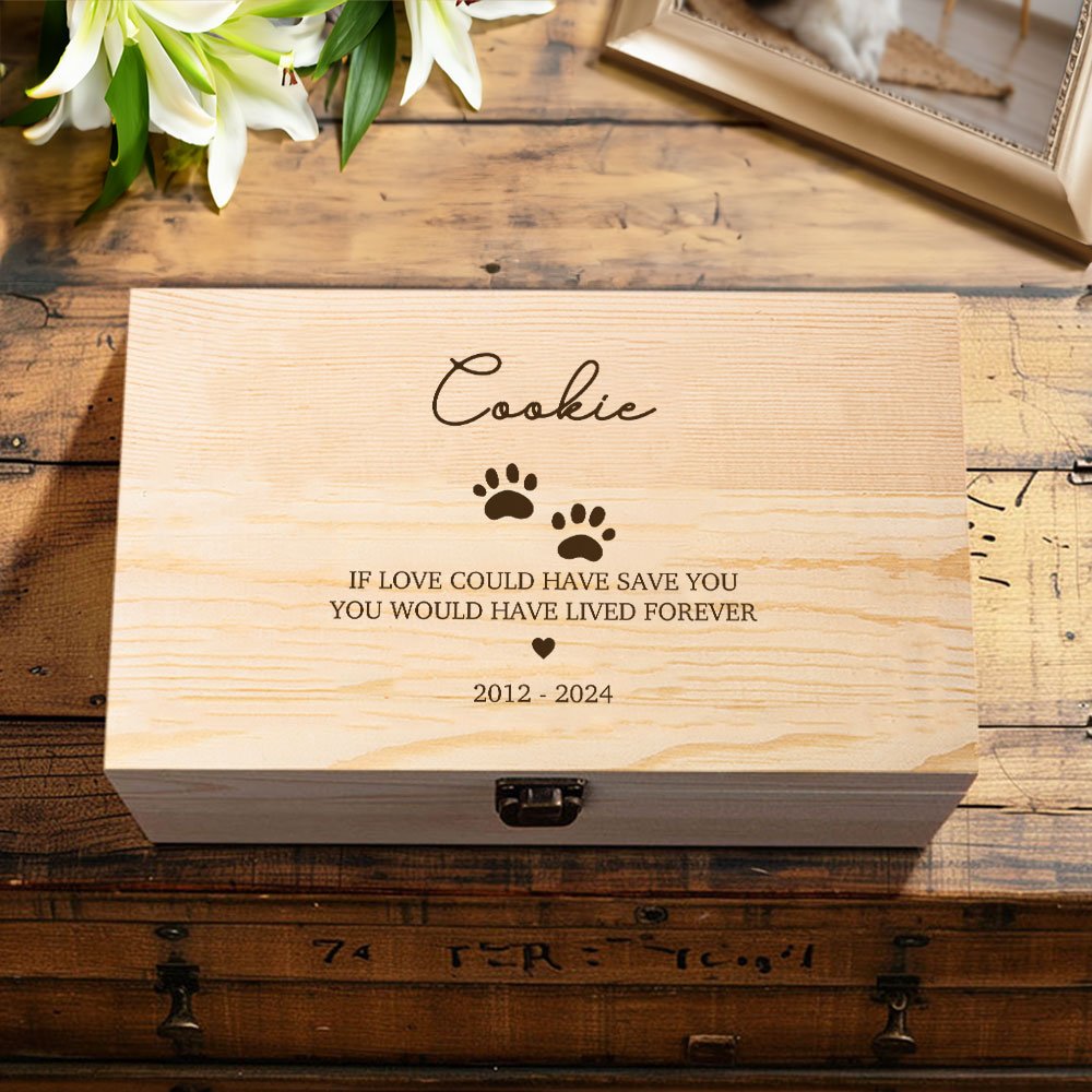 Personalized Animal Paw Print Heart Wooden Storage Box with Name Text and Date Birthday Memorial Gift for Pet Owners