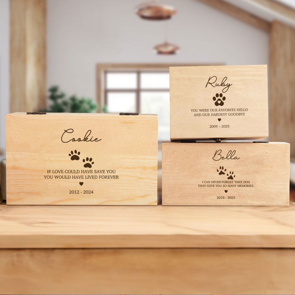Crafted from high-quality wood, it features clear, natural grain and a warm, rich touch. The durable wood material provides long-lasting protection for your pet's belongings. Unlike ordinary plastic storage boxes, this box is both practical for everyday storage and a valuable keepsake, preserving the warmth of time.