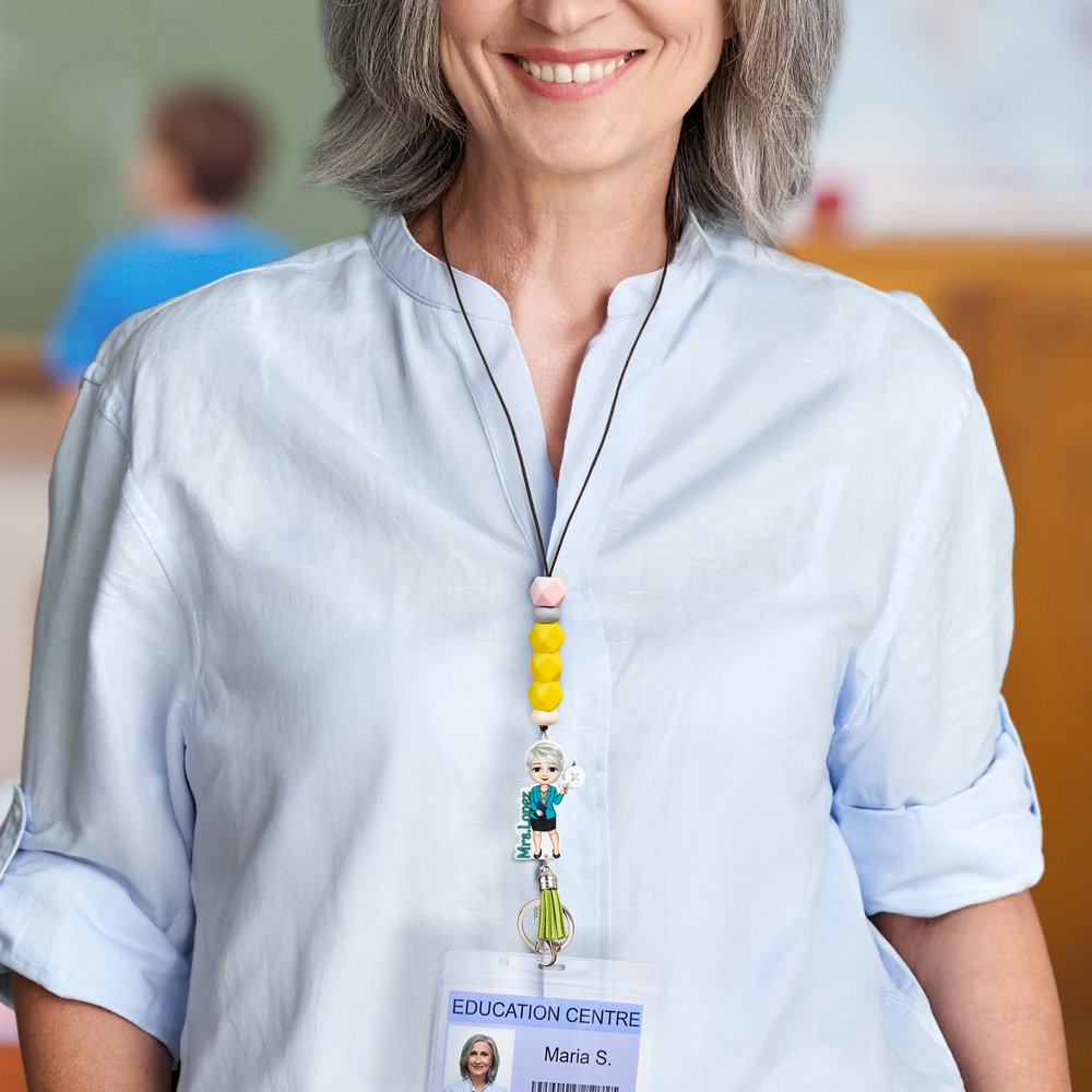 This lanyard is based on the image of a cartoon teacher, with professional elements such as blackboard, chalk, and books to create a visual symbol full of educational warmth. Supports customized teacher title and last name, making each gift unique.