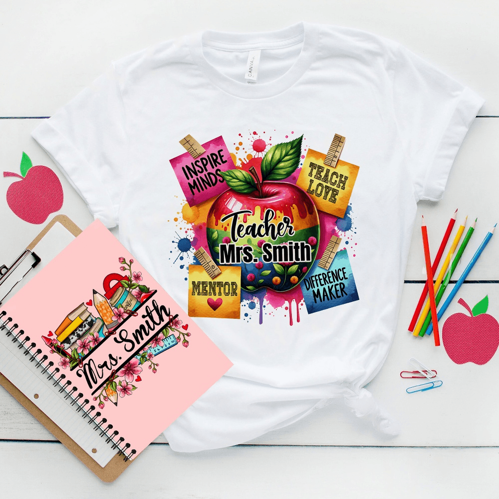 With colorful apple patterns as the main body, paired with texts like “INSPIRE MINDS” and “TEACH LOVE”, highlighting teachers’ multiple roles. You can customize exclusive names, and it features a watercolor splash in an ink style.