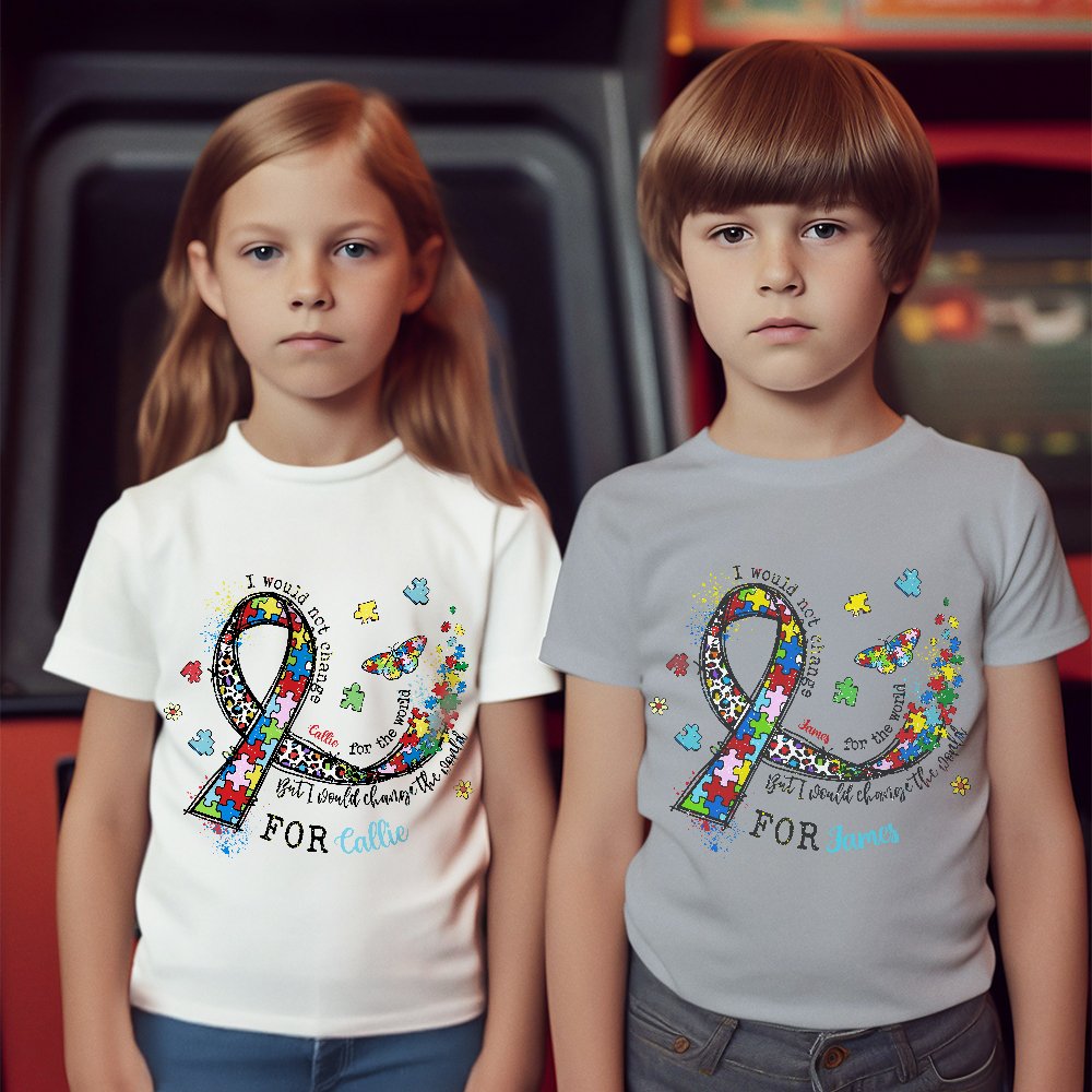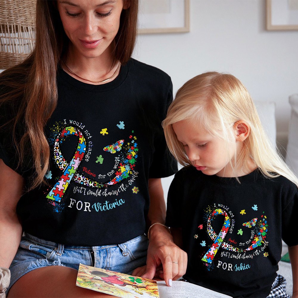 Personalized Autism Ribbon Awareness 100% Cotton Kid Adult T-shirt with Name World Autism Day Birthday Encouragement Gift for Family Friend