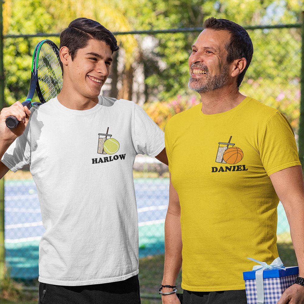 This is a combination of fashion and sports clothes, there are a variety of colors to choose from, with the pattern of weekend iced coffee, and soccer, baseball, basketball, softball, pickleball, golf, tennis, rugby, badminton a variety of ball patterns to make the clothes more lively and fashionable, if you also drink a lot of coffee at the same time, or even a coffee lover, customized with a name, pick a favorite color, this will be especially exclusive to your clothes.