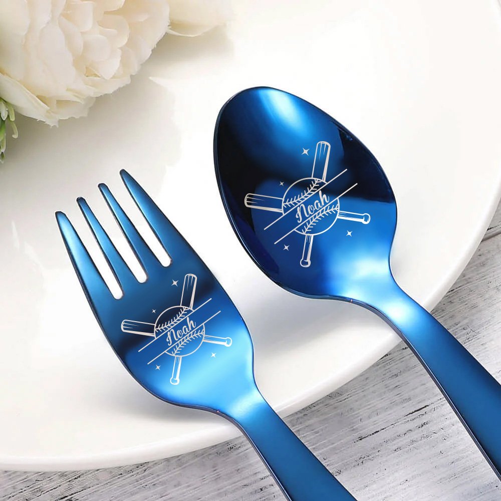 Baseball cutlery sets are the best gift for baseball players. Baseball Patterns are engraved on the spoon to make eating more fun. The pattern is laser engraved and can be preserved forever. The spoon is healthy and hygienic, and it is easy for children to hold.