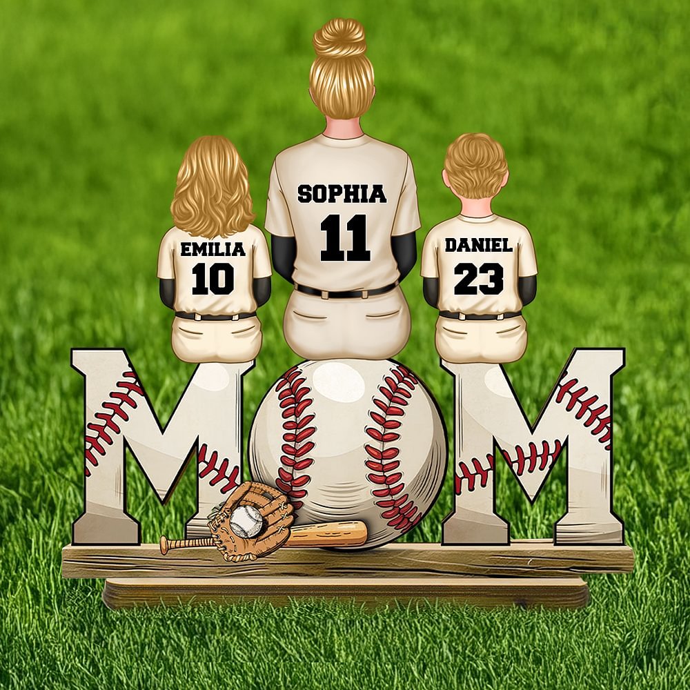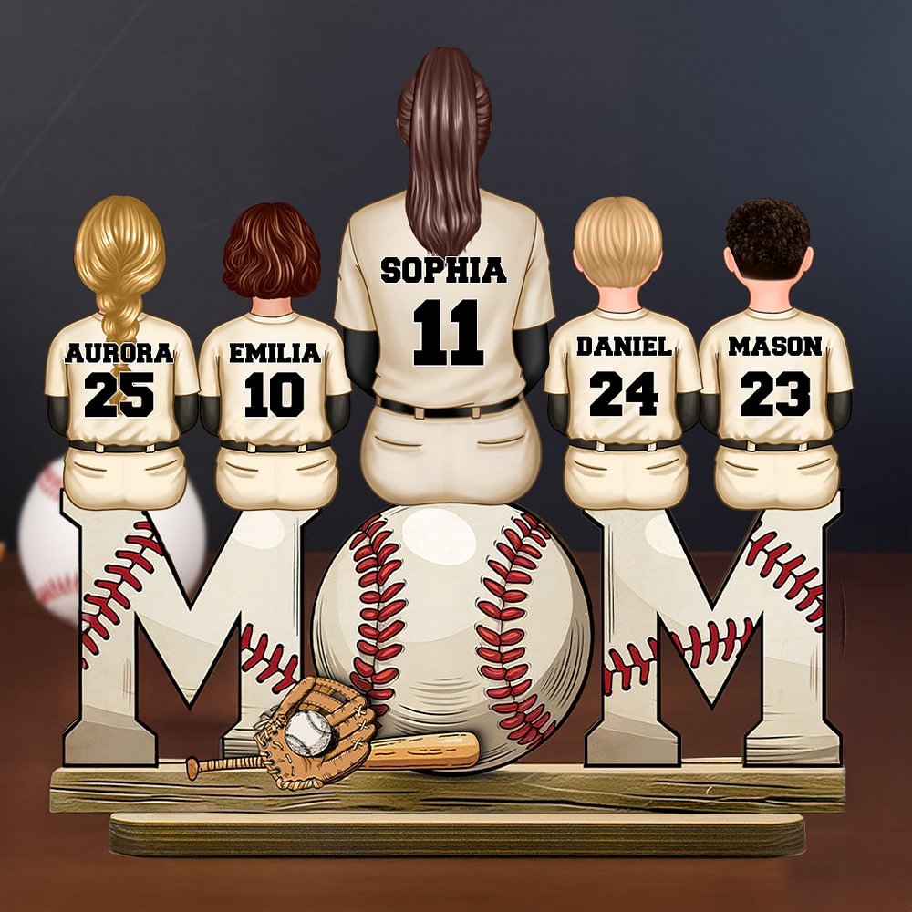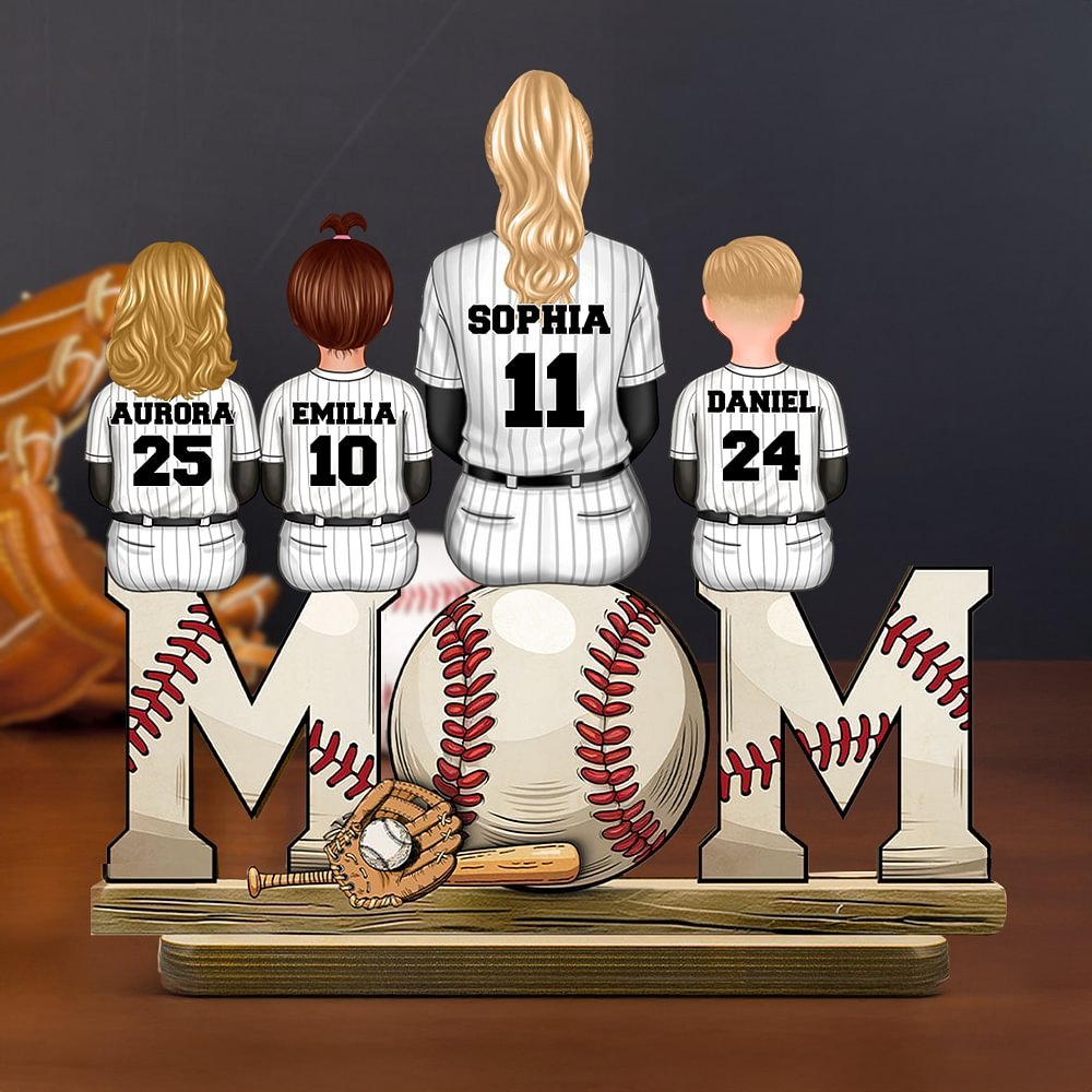 This wooden plaque features a heartwarming rear-view scene of mom and kids sitting, with a baseball theme. It supports customizing 1-5 characters, each with a unique name and number. Skillfully integrating family and baseball passion, it’s highly personalized, perfectly showing love for both the sport and family.