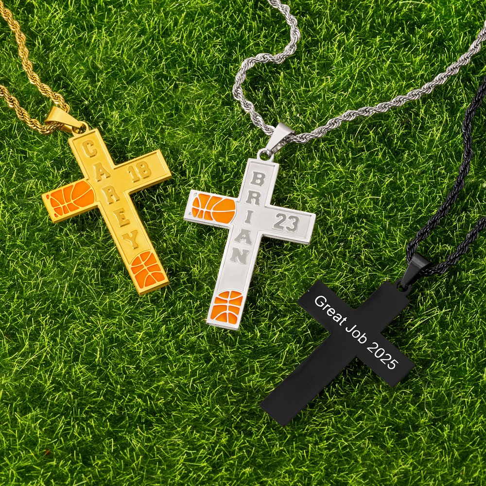 Each necklace is thoughtfully infused with sports elements, combining the classic cross design with ball shapes to showcase dynamism and passion. Users can choose from various sports styles, including basketball, soccer, baseball, and football, and customize with names, numbers, and text (like favorite players), making it a symbol of individuality or a tribute to beloved athletes.