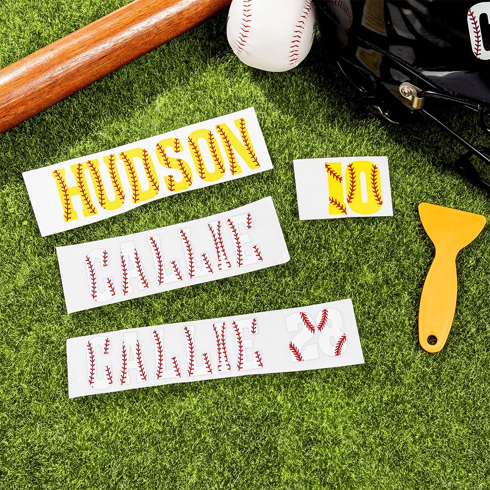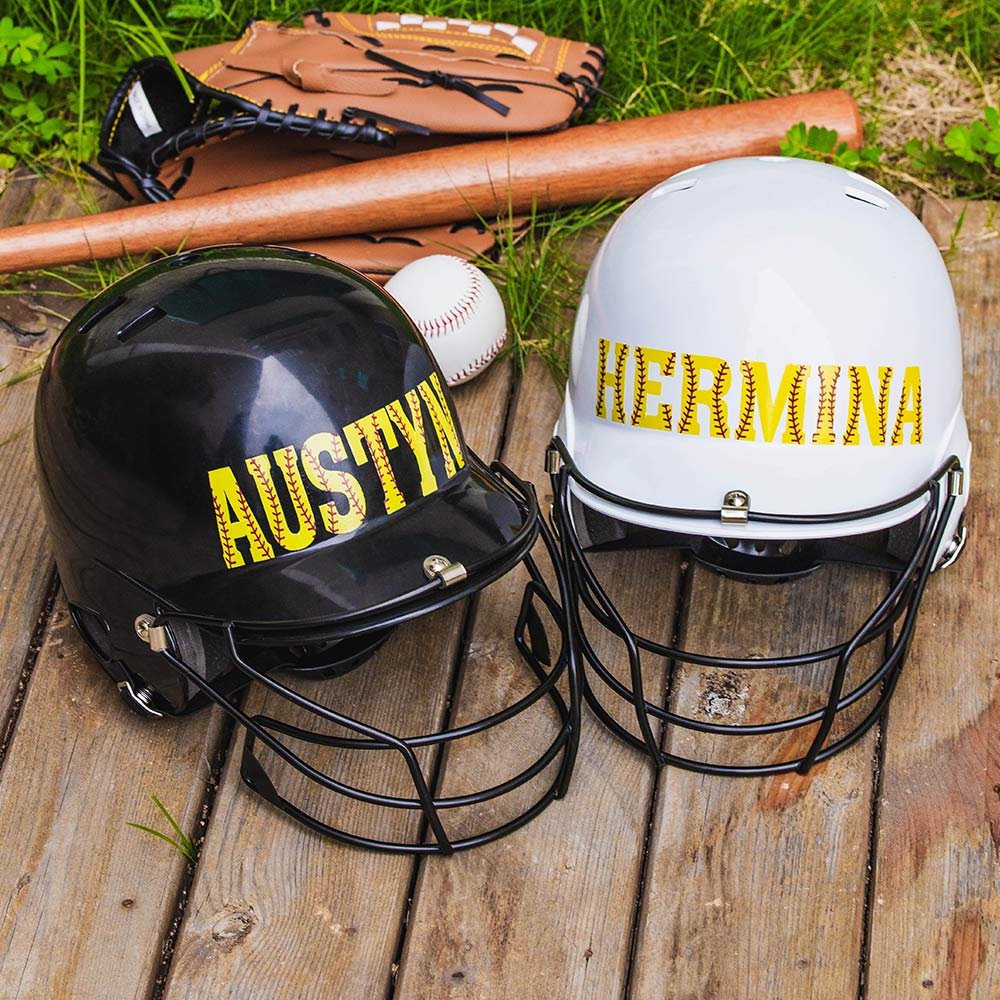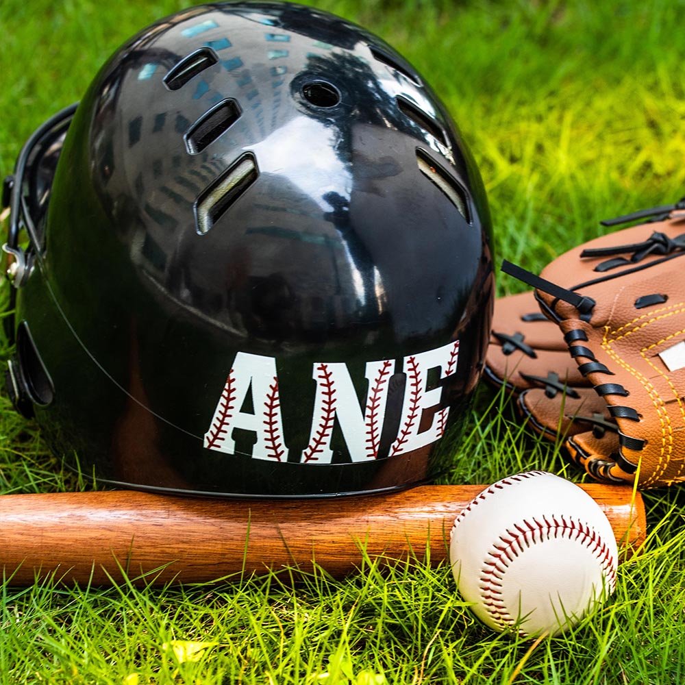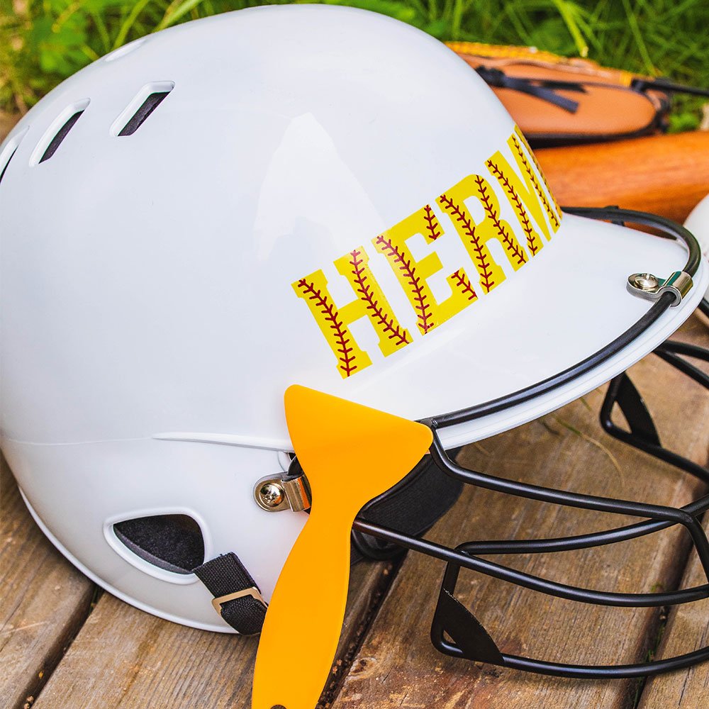The classic baseball and softball stitching inspires each decal. The letters are intricately crafted to mimic the iconic red or yellow stitches on the balls, giving your helmet an authentic and sporty look. But what sets it apart is the ability to personalize it with your name or number! Imagine boldly displaying your name on your helmet in a style that screams baseball or softball passion.