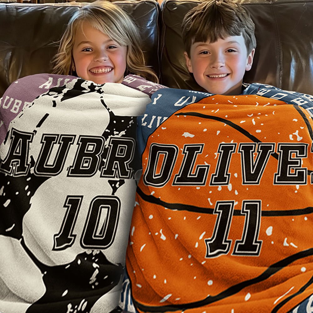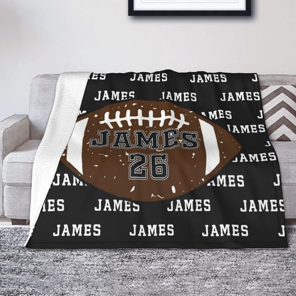 Beyond its visual appeal and practical applications, this blanket carries a deep emotional resonance. As a thoughtful and personalized gift, it will constantly remind you of your care and appreciation for the recipient's athletic passions and achievements. The combination of their name and number and the diverse sports motifs creates a one-of-a-kind keepsake.