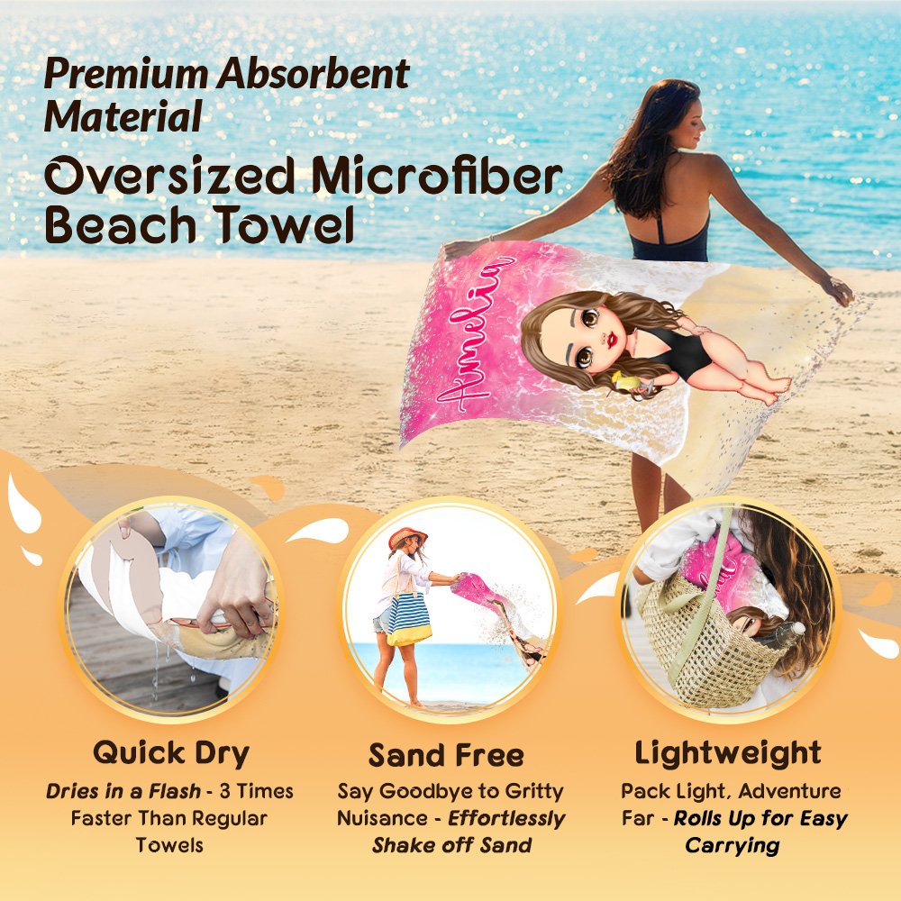 | Feature: | Super Absorbent, Fast Drying, Sand Free, Durable and Soft, Oversized, Lightweight and Portable, Cartoon Woman Character Design |