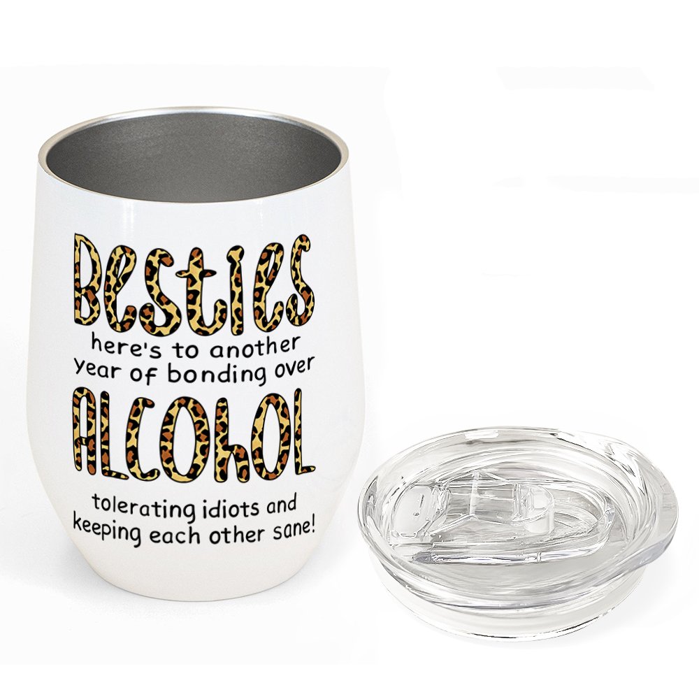 Personalized Besties Alcohol Tolerating Bonding Over 12oz Wine Tumbler Friennship Birthday Gift for Friends